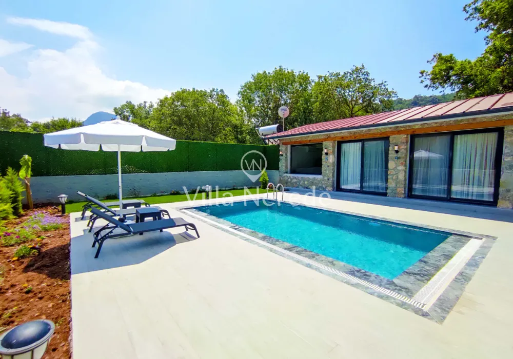 Fethiye Kayaköy mevkiinde bulunan villa, 1 yatak odasıyla 2 kişilik konaklama kapasitesi sunmaktadır. Balayı çiftleri ve çekirdek aileler tarafından tercih edilen villa, havuz alanı korunaklı bir yapıya sahiptir.