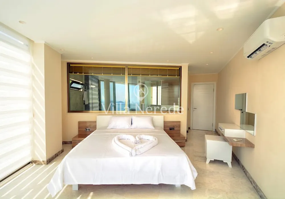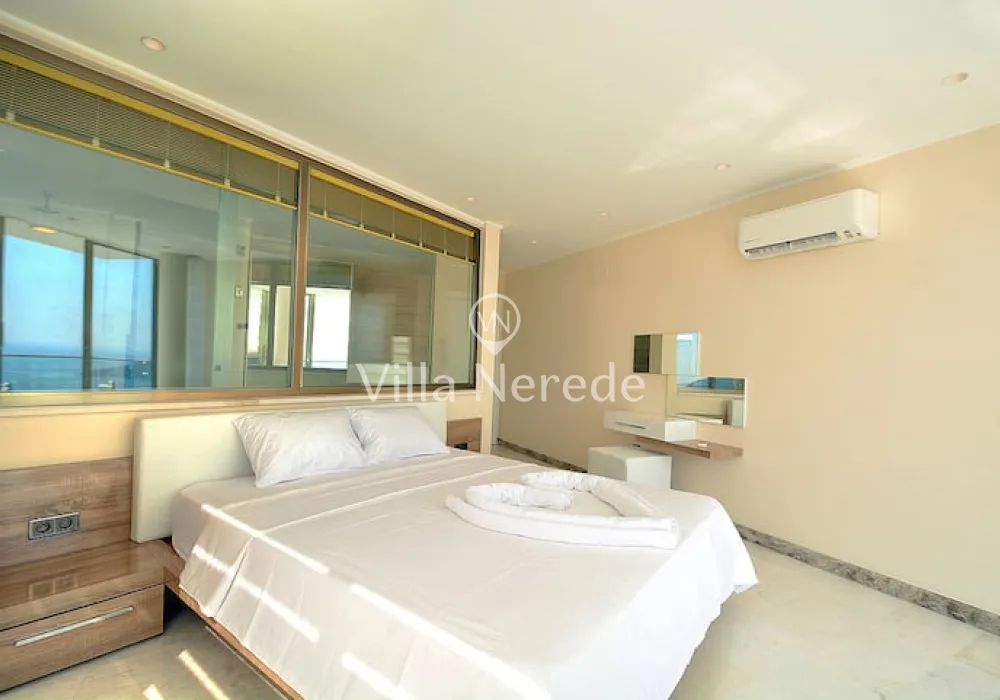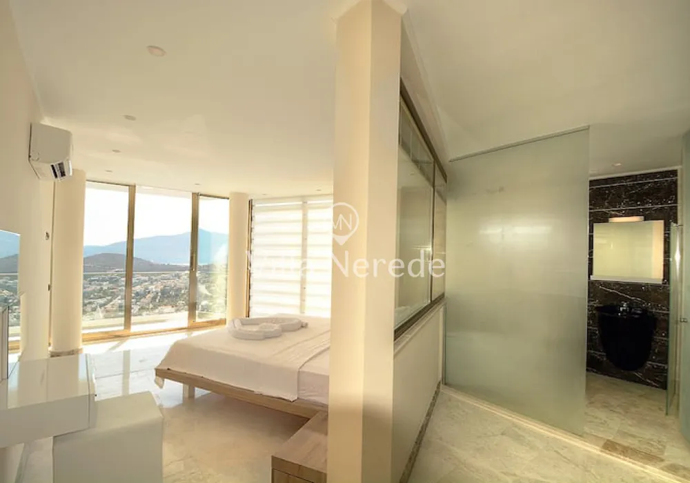 Geniş havuz ve bahçe alanı sayesinde mangal keyfi yapabilirsiniz. Birinci yatak odası deniz manzaralıdır. çift kişilik yatak,ebeveyn banyosu ve jakuzi;İki yatak odasında çift kişilik yatak , ebeveyn banyosu; dördüncü yatak odasında iki adet tek kişilik yatak,ebeveyn banyosu mevcuttur.