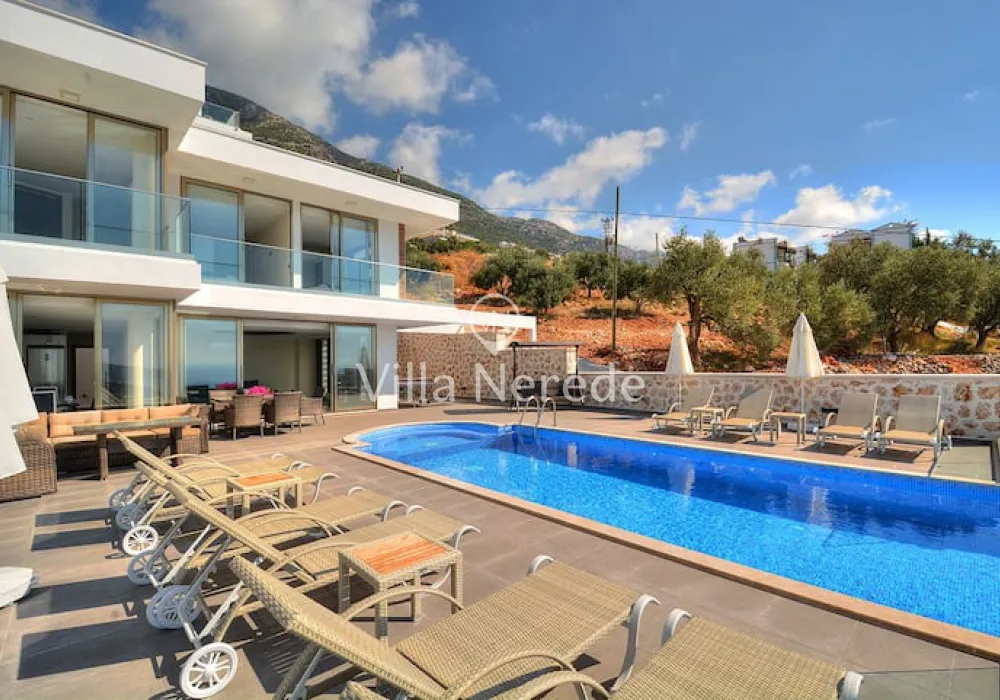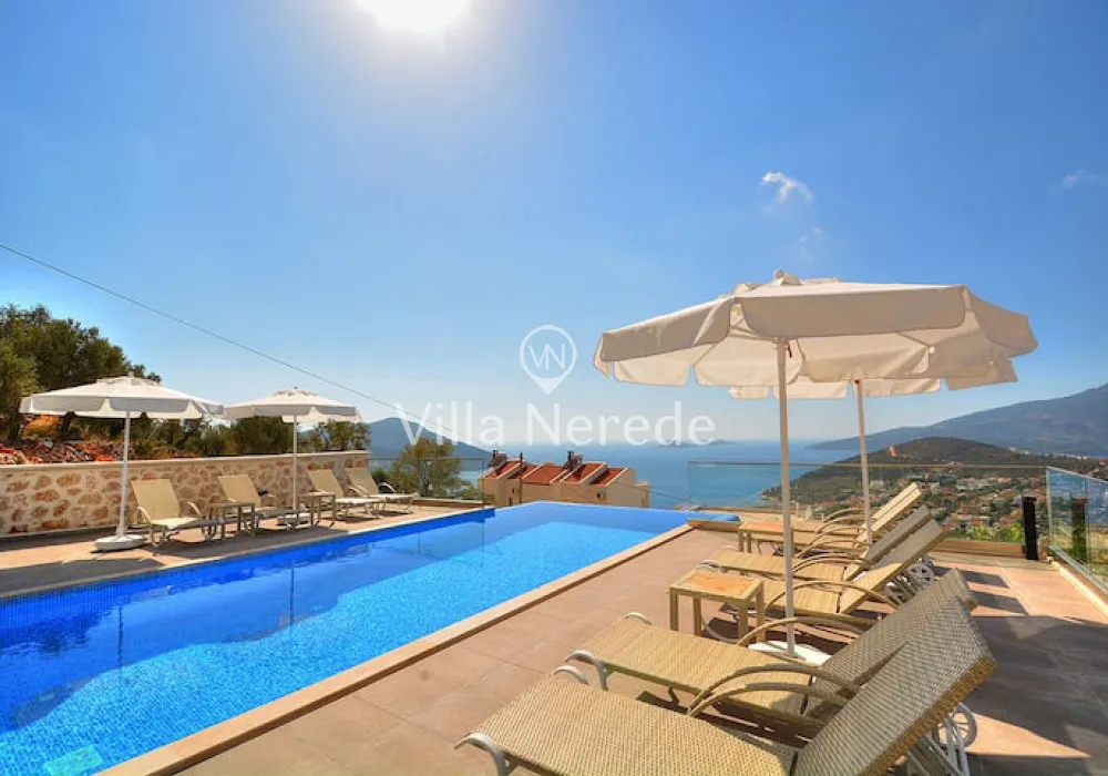 Kalkan Kızıltaş mevkiinde bulunan villamız 4 yatak odalı 8 kişilik kapasitedir.Kısmi korunaklı havuz alanı sayesinde kalabalık aileler en çok tercihleri arasında yer almaktadır.Panoramik deniz ve doğa manzarasına sahip villamız eşsiz konaklama hizmeti sağlıyor.