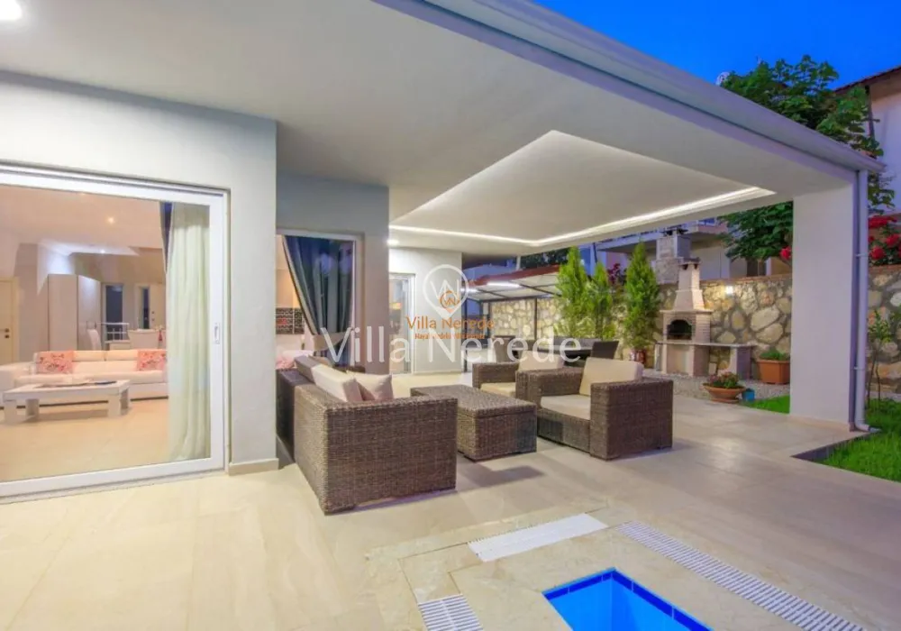 Fethiye Ovacık mevkiinde bulunan villa, 4 yatak odasıyla 8 kişilik konaklama kapasitesi sunmaktadır. Merkeze ve plaja yakın konumda olup, genişliği ile göz dolduran villa, kalabalık aile ve arkadaş grupları için idealdir.