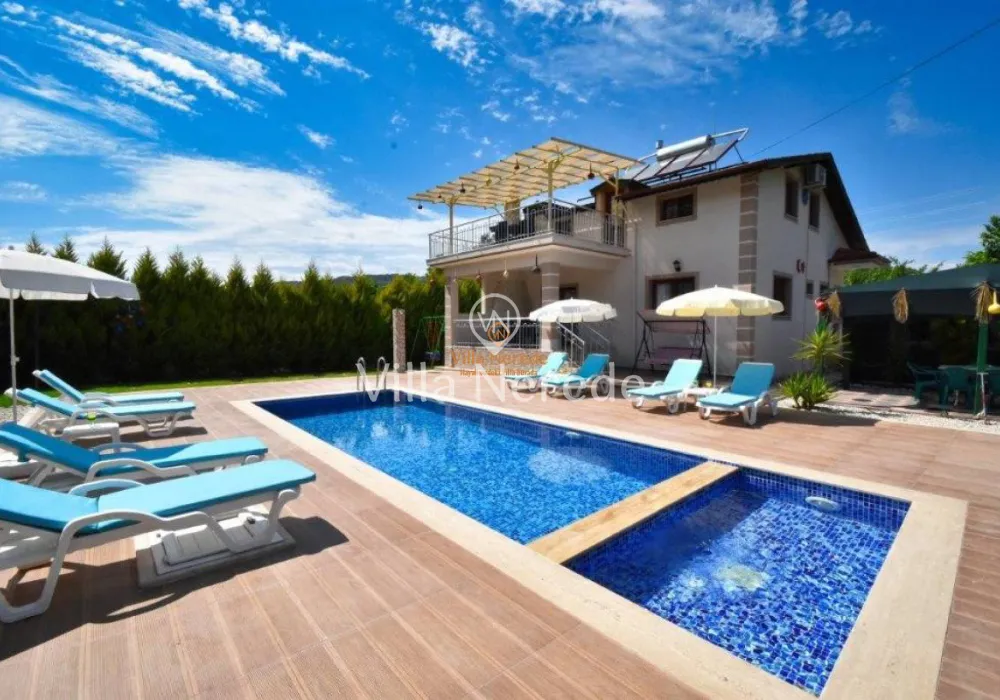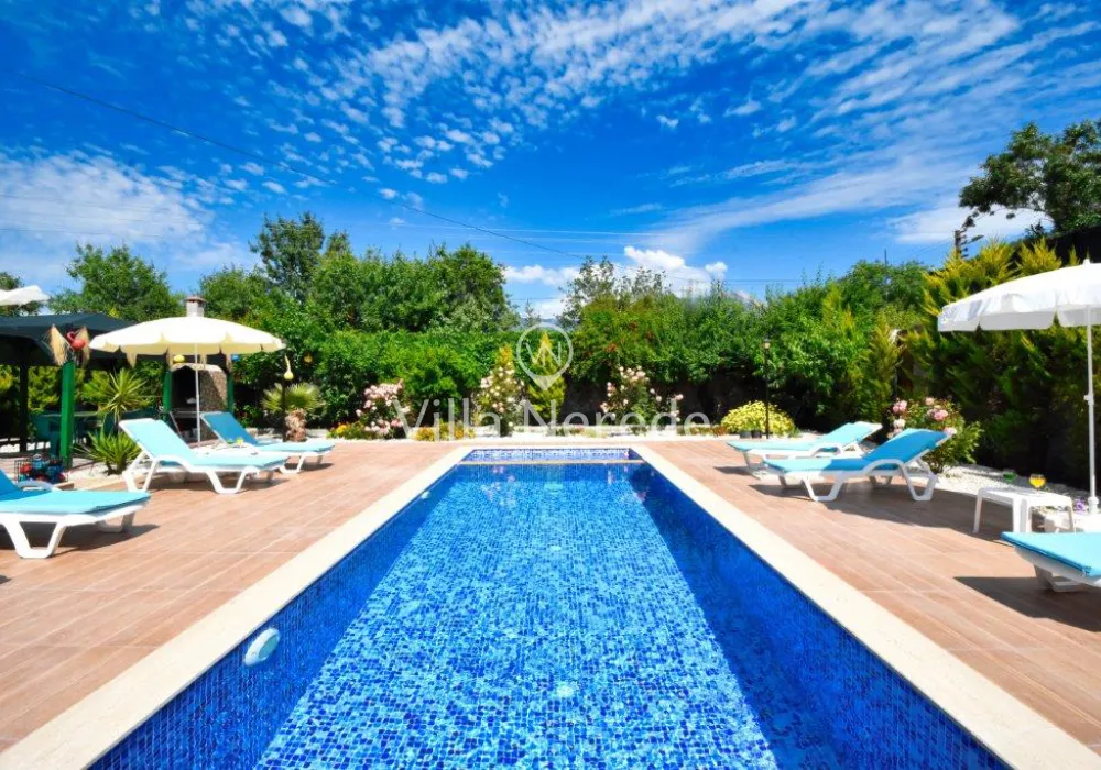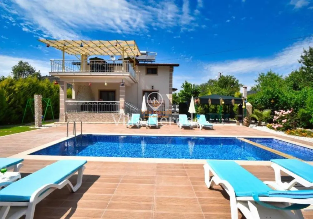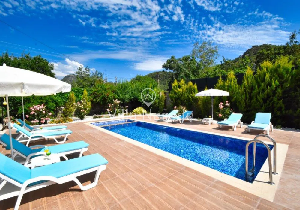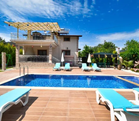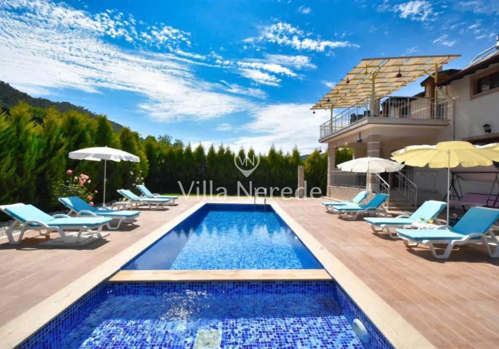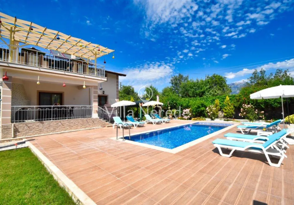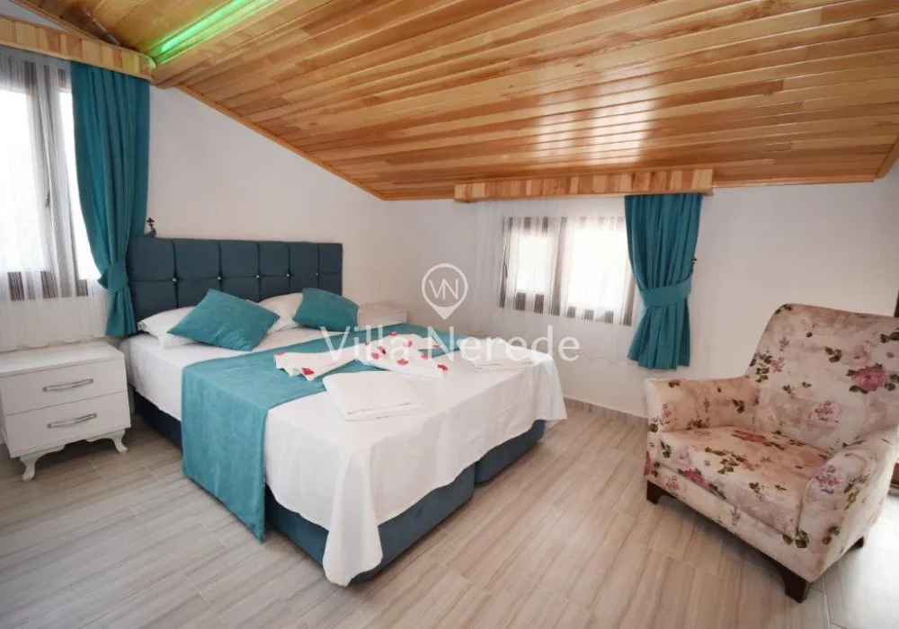 Fethiye Kayaköy mevkiinde bulunan villa, 4 yatak odasıyla 7 kişilik konaklama kapasitesi sunmaktadır. Kalabalık aileler ve arkadaş grupları tarafından tercih edilen villa, havuz alanı korunaklı bir yapıya sahiptir.