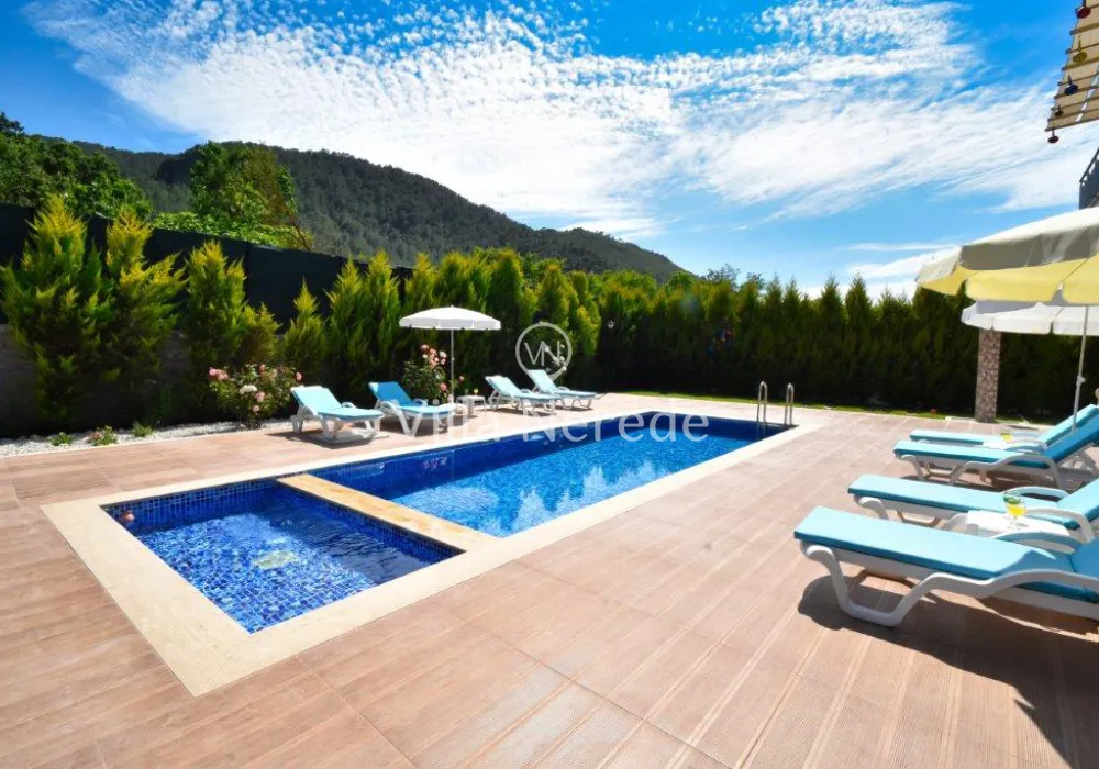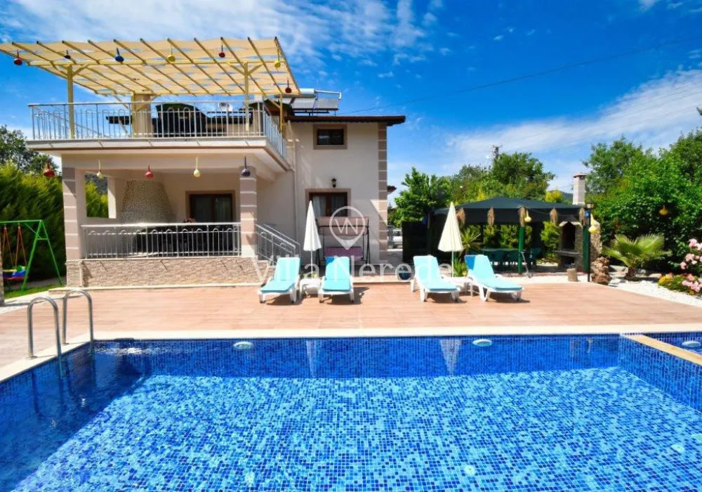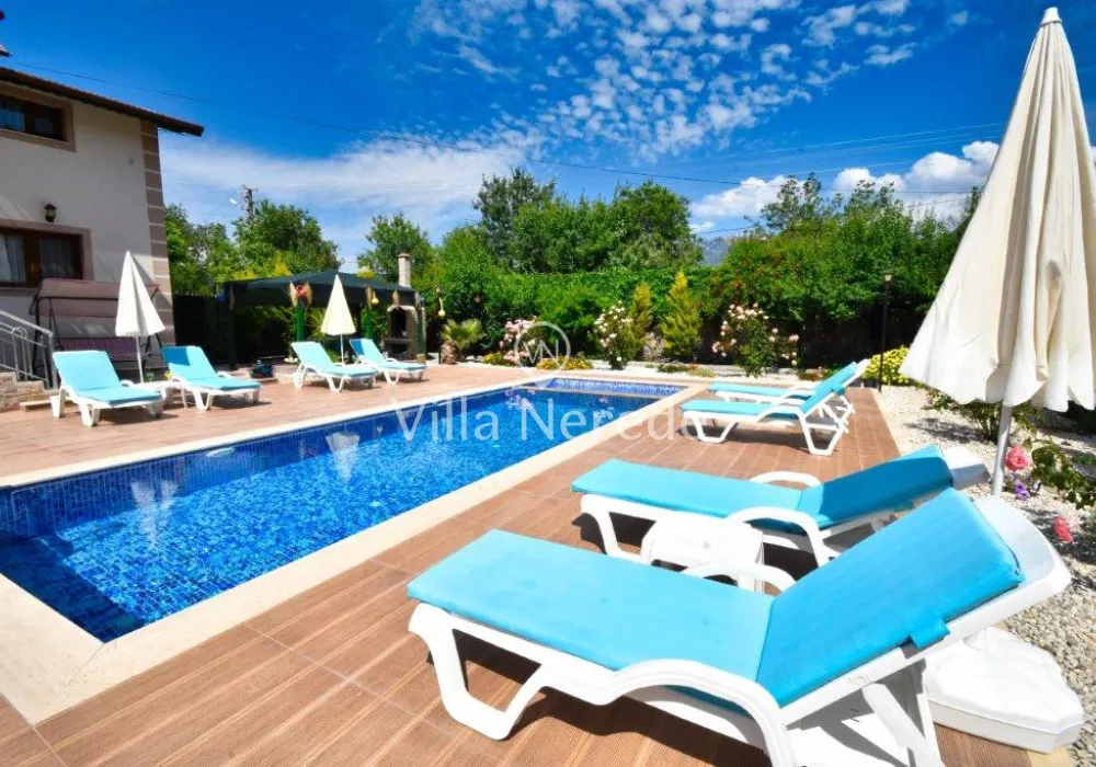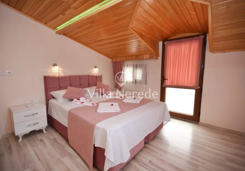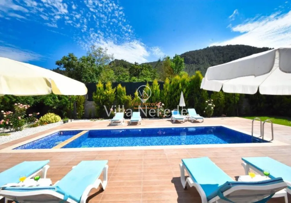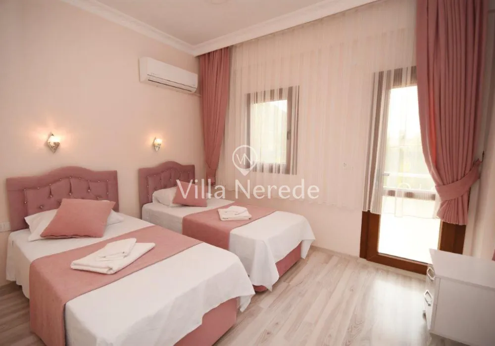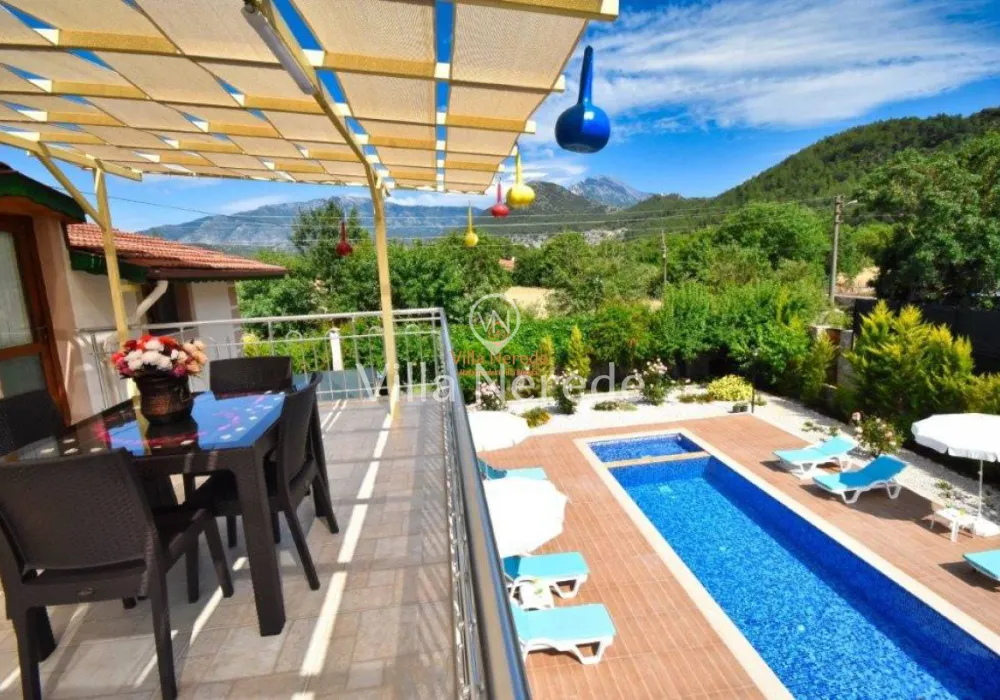 Fethiye Kayaköy mevkiinde bulunan villa, 4 yatak odasıyla 7 kişilik konaklama kapasitesi sunmaktadır. Kalabalık aileler ve arkadaş grupları tarafından tercih edilen villa, havuz alanı korunaklı bir yapıya sahiptir.