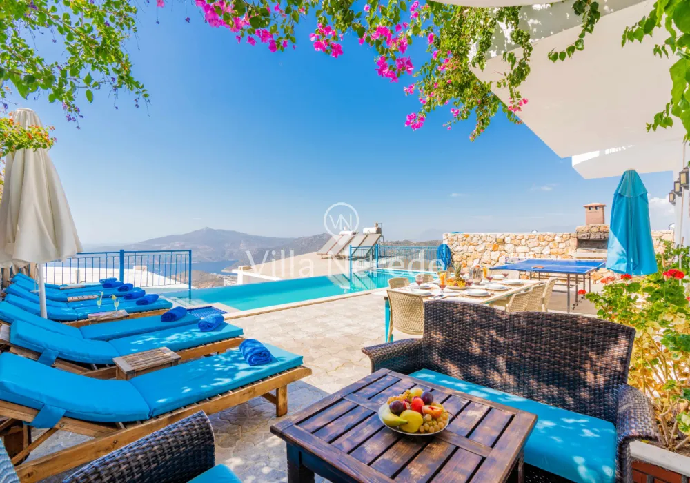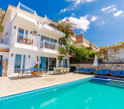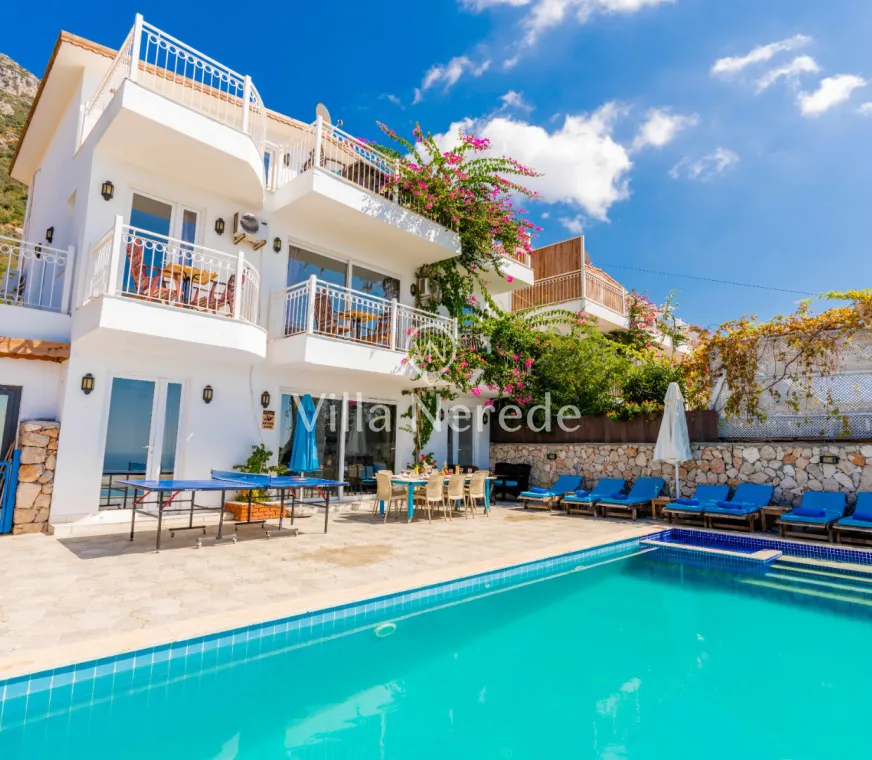 Kalkan Kördere mevkiinde bulunan villamız doğa ile iç içe muhteşem bir deniz manzarasına sahip olup, 4 yatak odasıyla 8 kişilik konaklama kapasitesi sunmaktadır. Modern ve konforlu bir şekilde dizayn edilen villamız çocuk havuzuna sahip olup, kalabalık aileler ve arkadaş grupları için uygundur.