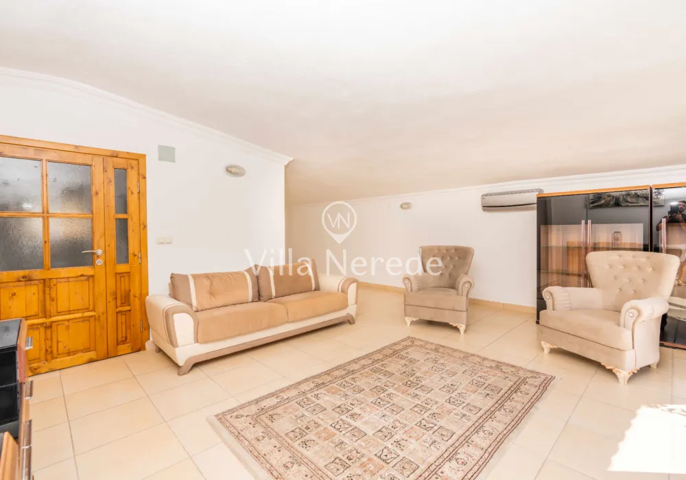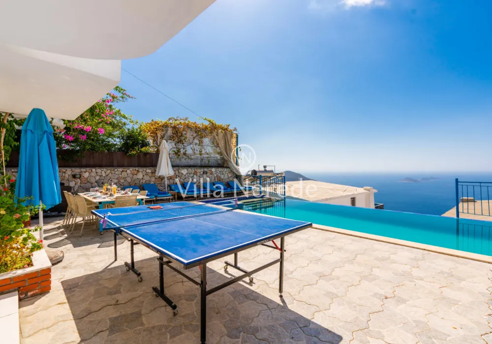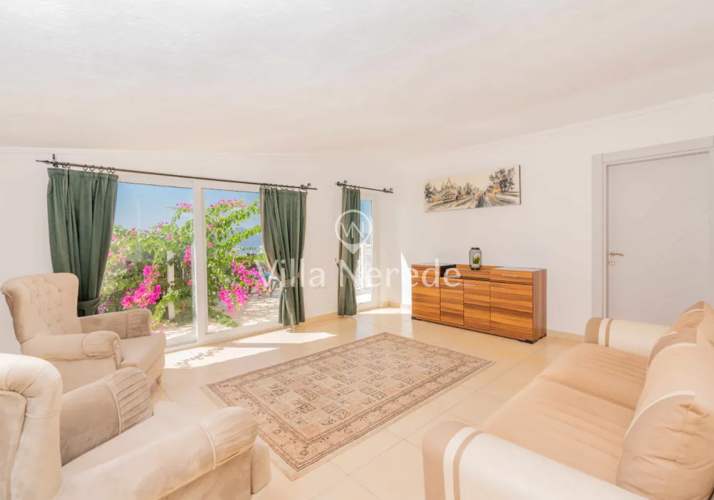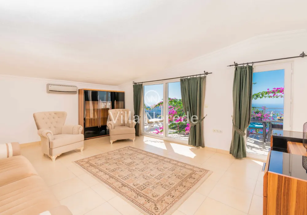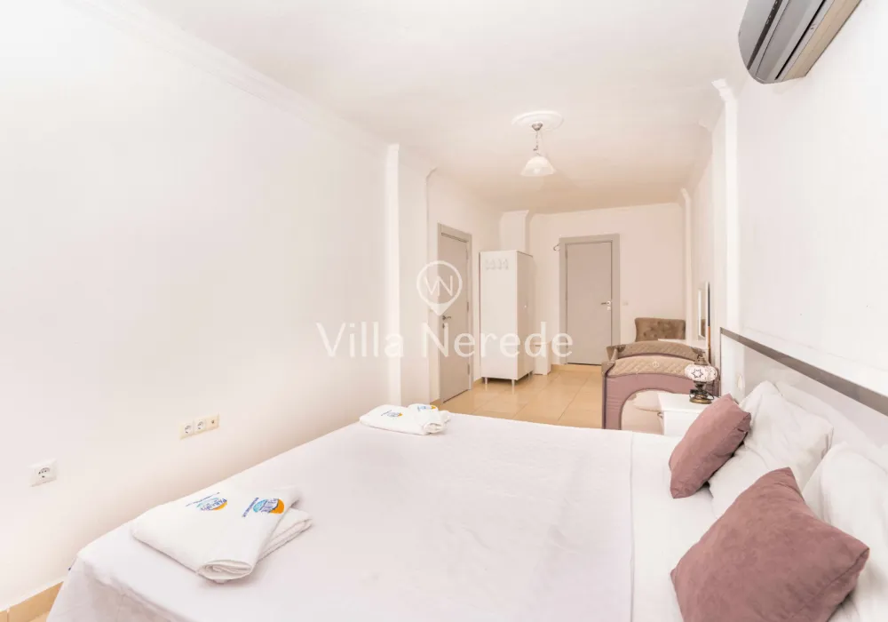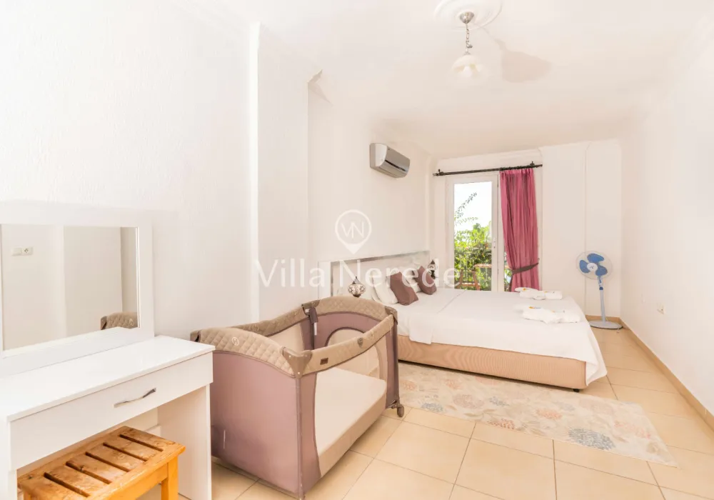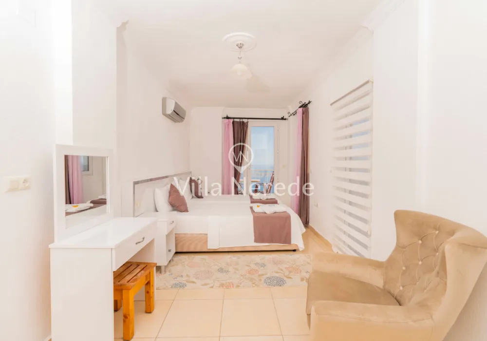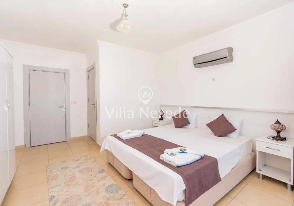 Çocuk havuzu ve eşsiz bir deniz manzarasına sahip olan villada kapasiteye uygun oturma alanı,, şezlong takımı, masa tenisi ve barbekü alanı; havuz terasına açılan konforlu oturma odası, ihtiyaçlarınızı karşılayacak donanıma sahip mutfağı mevcuttur.Özenle dekore edilmiş detayları sizleri memnun edecek, sevdiklerinizle ayrıcalıklı bir tatilin keyfini sürebileceksiniz.İki yatak odasında çift kişilik yatak ,ebeveyn banyosu;iki yatak odasında ise iki tek kişilik yatak ve ebeveyn banyosu bulunmaktadır.