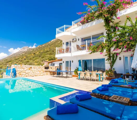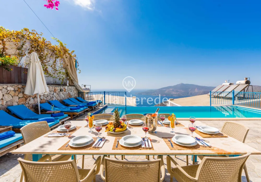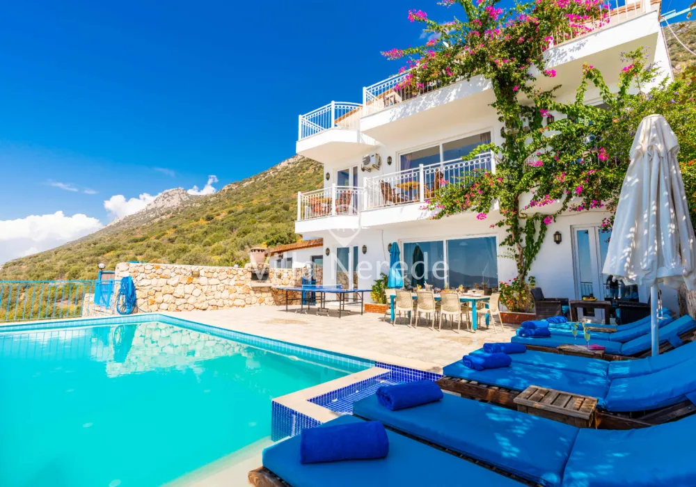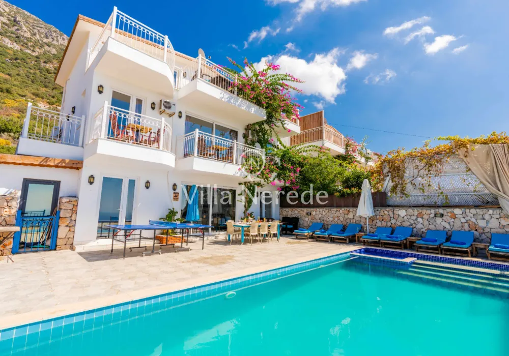 Kalkan Kördere mevkiinde bulunan villamız doğa ile iç içe muhteşem bir deniz manzarasına sahip olup, 4 yatak odasıyla 8 kişilik konaklama kapasitesi sunmaktadır. Modern ve konforlu bir şekilde dizayn edilen villamız çocuk havuzuna sahip olup, kalabalık aileler ve arkadaş grupları için uygundur.