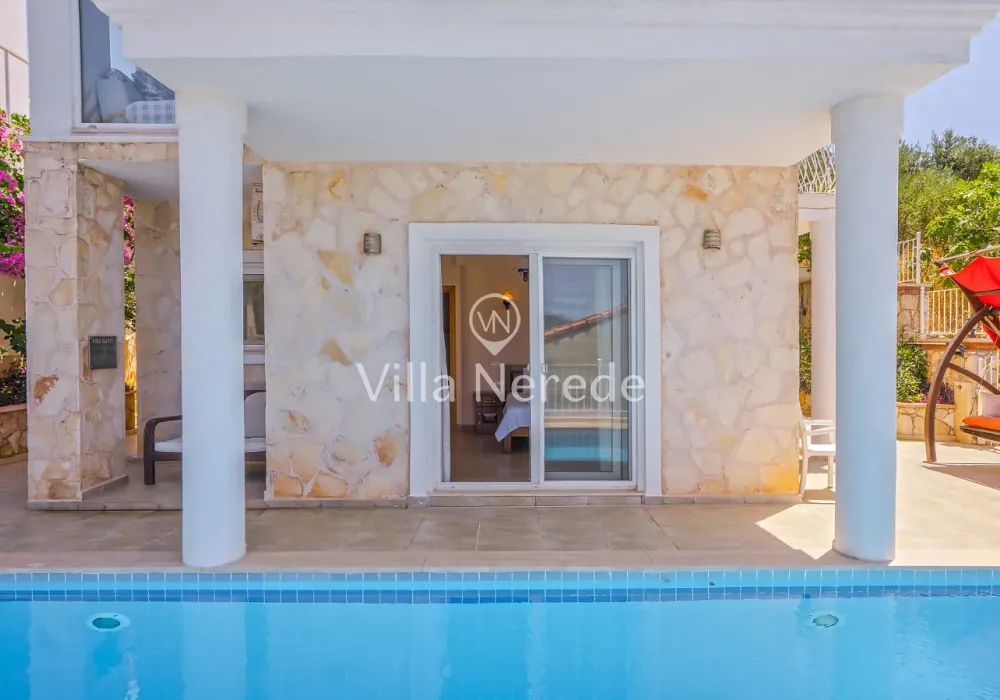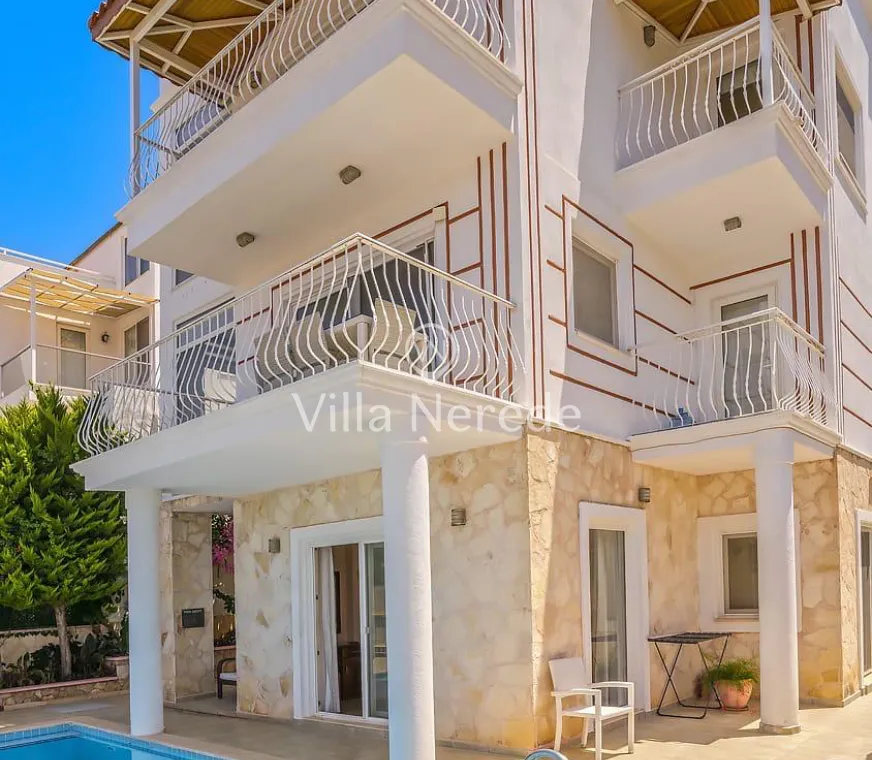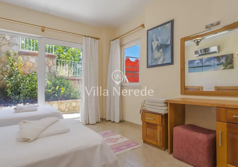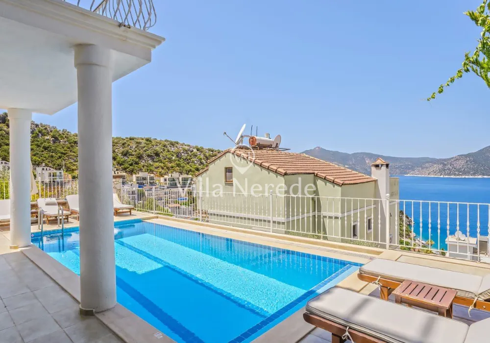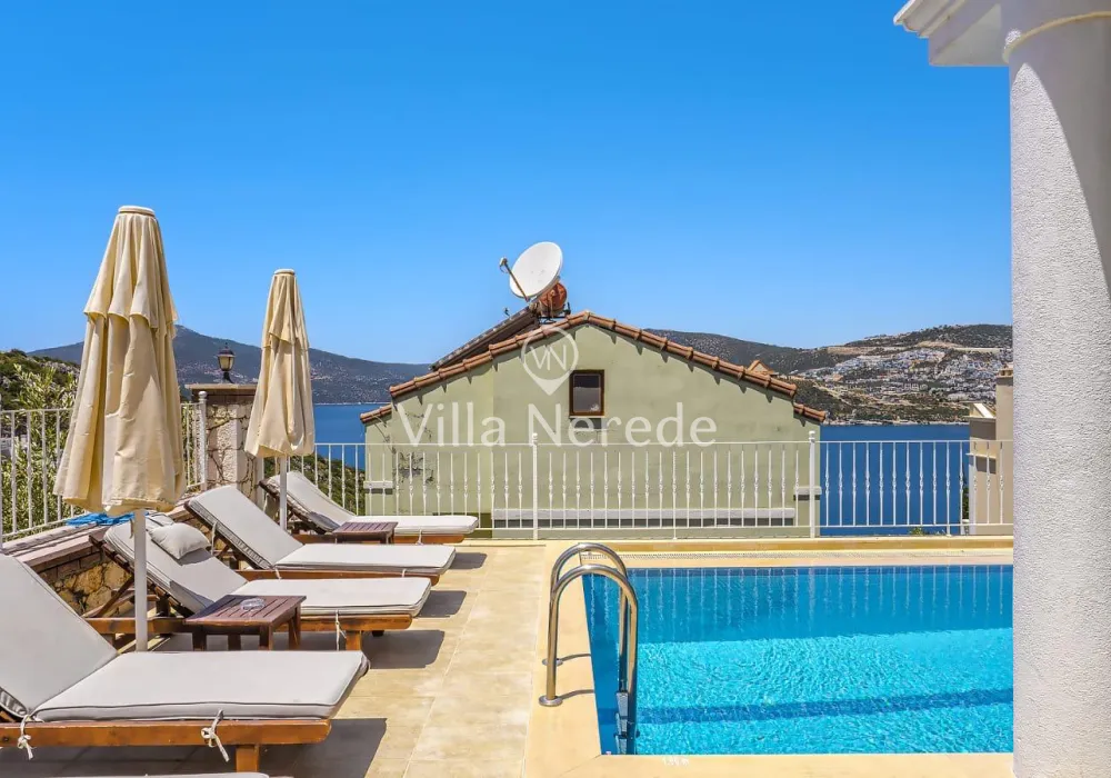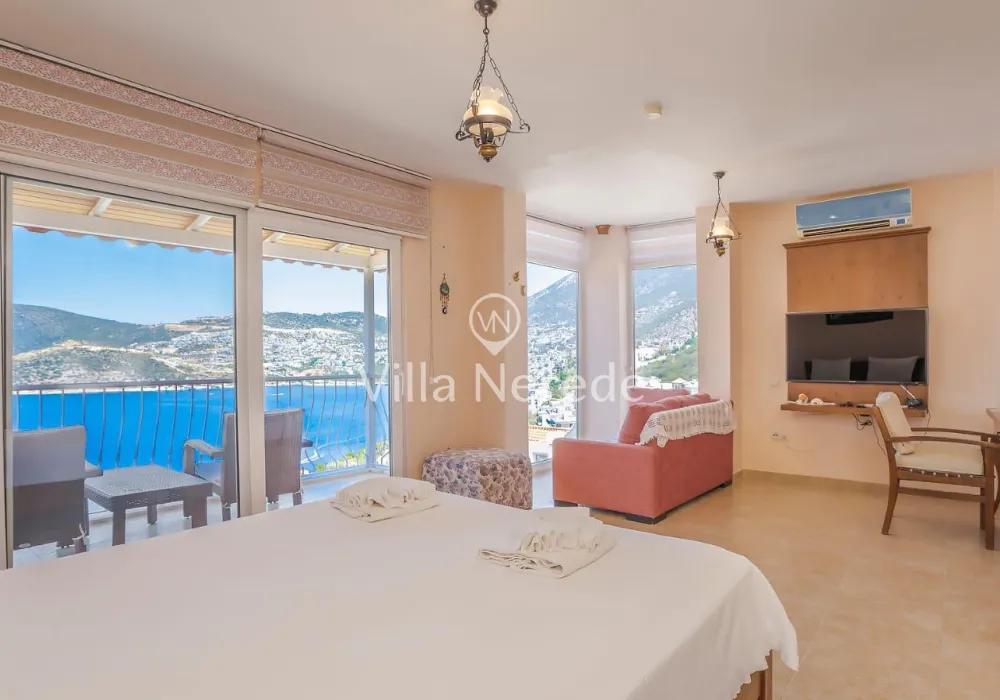 Kalkan Kışla mevkiinde muhteşem bir deniz manzarası bulunan villa, 4 yatak odasıyla 8 kişilik konaklama kapasitesi sunmaktadır. Modern ve konforlu bir şekilde dizayn edilen villamız kalabalık aileler ve arkadaş grupları için uygundur.