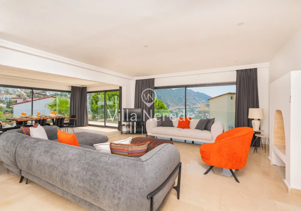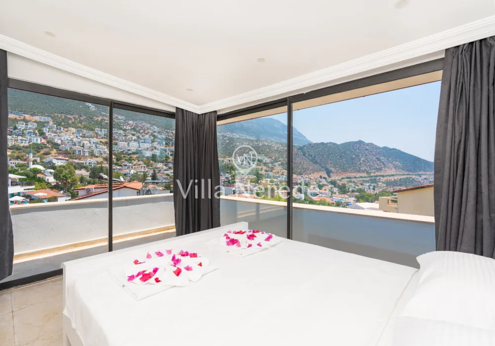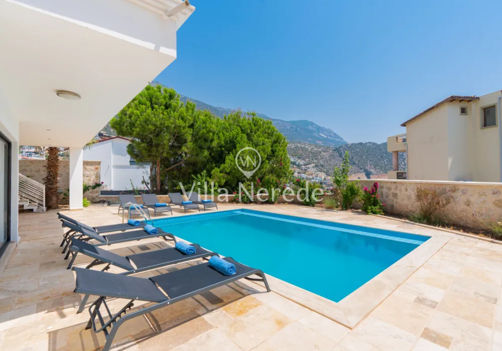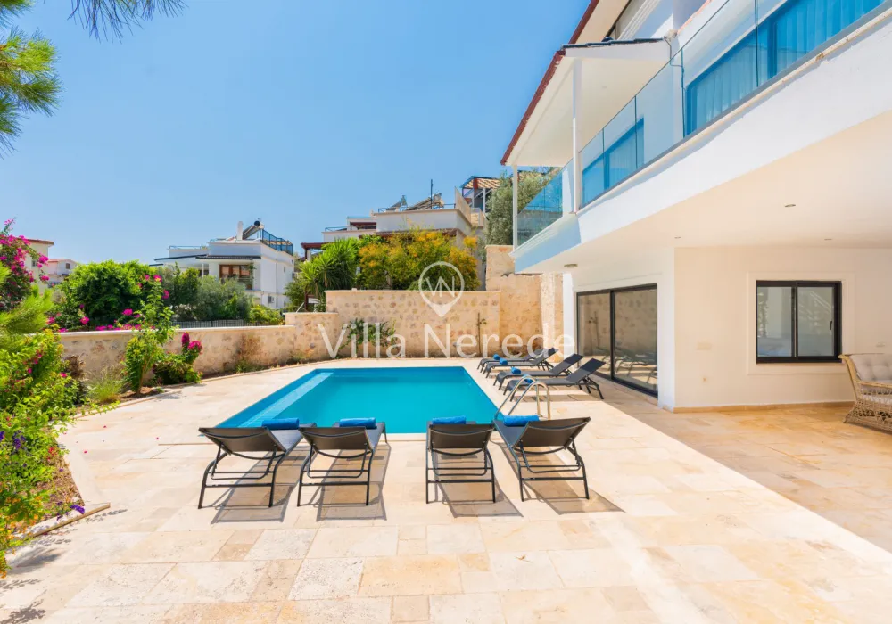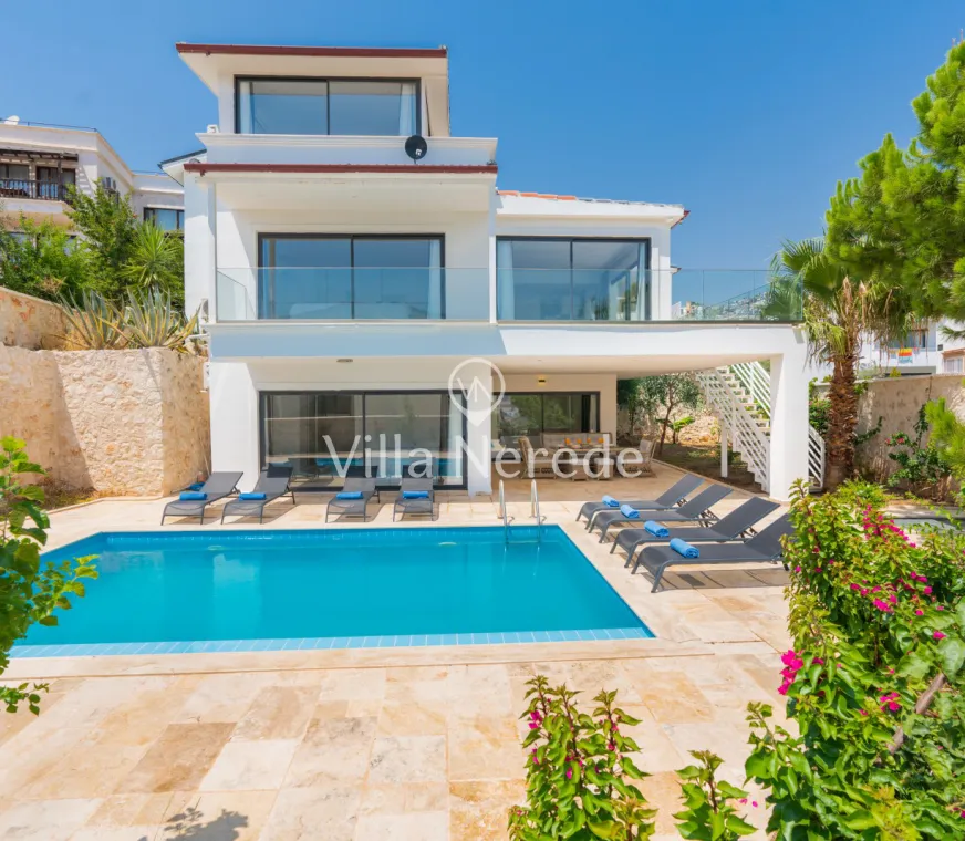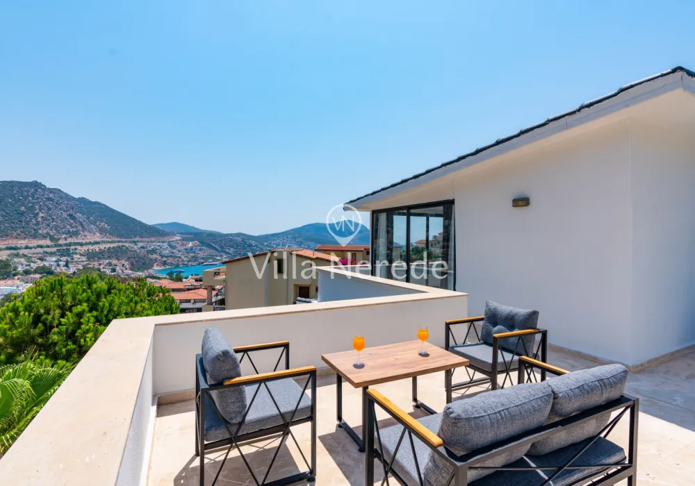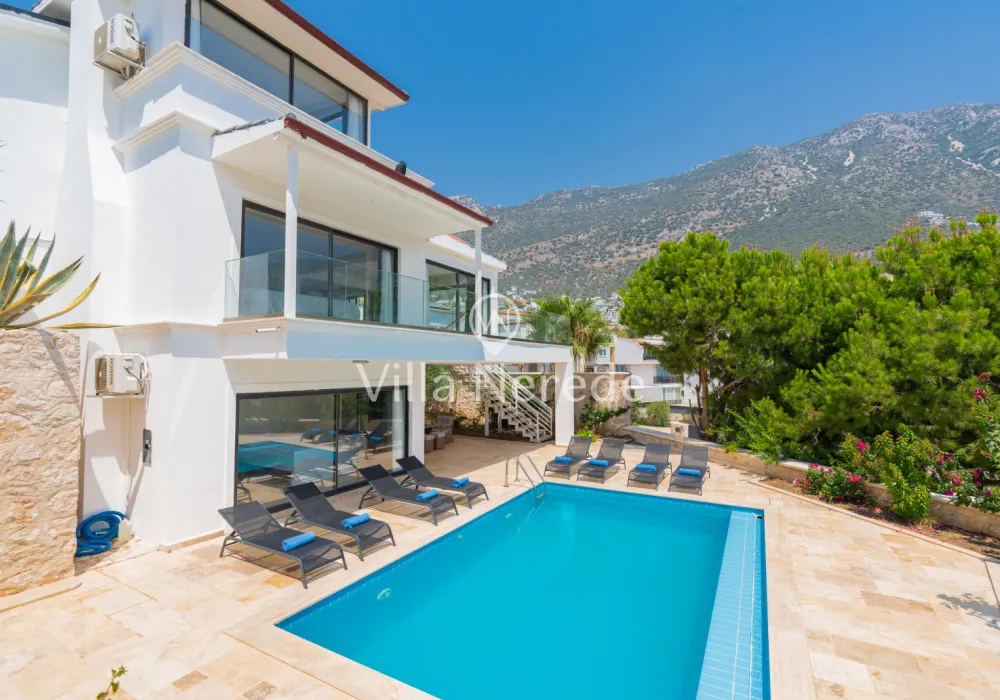 Kalkan Ortaalan mevkiinde bulunan villa, 4 yatak odasıyla 8 kişilik konaklama kapasitesi sunmaktadır. Kısmi eniz ve şehir manzarasına sahip, genişliği ve şıklığı ile göz dolduran villa, kalabalık aile ve arkadaş grupları için uygundur.
