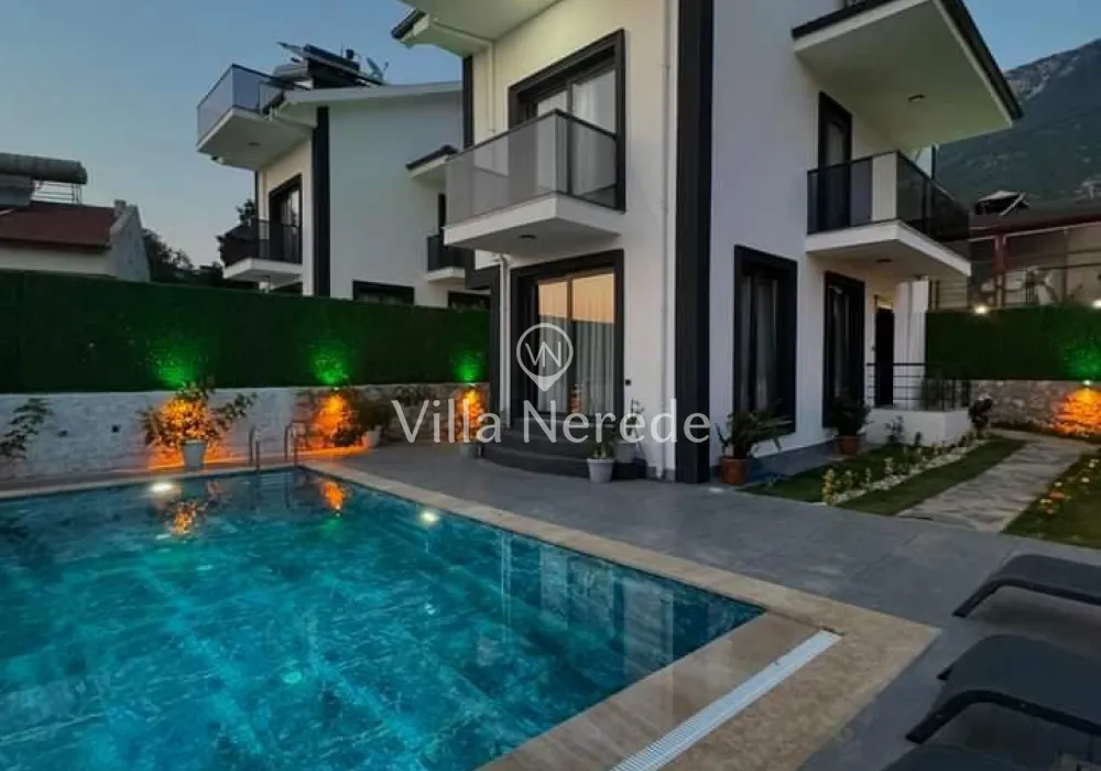 Ölüdeniz Ovacık da bulunan villa 6 kişilik 3 yatak odası 3 ebeveyn banyosu bulunmaktadır. Türkiye nin popüler tatil beldelerinden biri olan Muğla, Fethiye, Ölüdeniz mevkiinde konumlu villamız 3 yatak odalı olup 6 kişi konaklama kapasitesine sahiptir, tatiliniz esnasında ihtiyacınız olabilecek her şey düşünülmüş ve özenle tasarlanmıştır. Özel yüzme havuzu ve jakuzisi ile misafirlerine konforlu bir tatil sunan villamız enfes doğa manzarasına sahiptir.