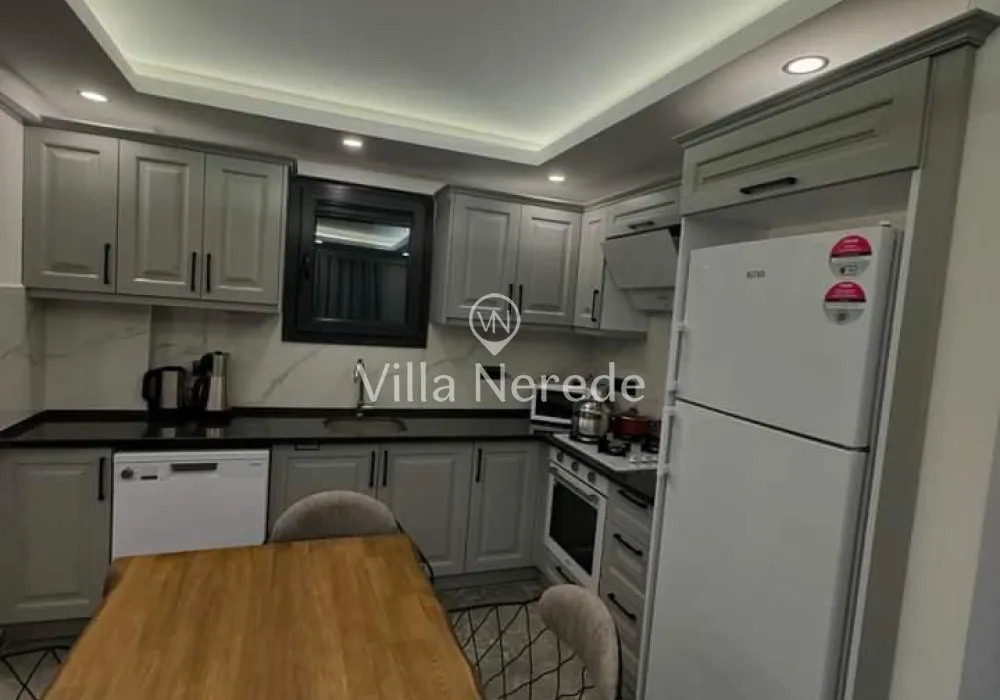 Lüks ve geniş bir mutfağa sahiptir. Buzdolabı, bulaşık makinası, çamaşır makinesi, fırın, ocak seti, kettle/çay makinesi, yemek takımı, tava, tencereler, çatal, bıçak vb. mutfağımızda her şey sizler için düşünülmüştür.