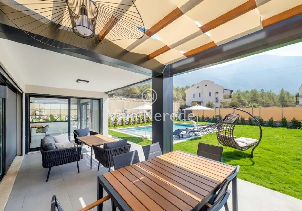 Fethiye Ovacık mevkiinde bulunan villa, 3 yatak odasıyla 6 kişilik konaklama kapasitesi sunmaktadır. Modern ve konforlu bir şekilde dizayn edilen villamız market ve restaurantlara yürüme mesafesinde olup kalabalık aileler ve arkadaş grupları tarafından tercih edilmektedir.