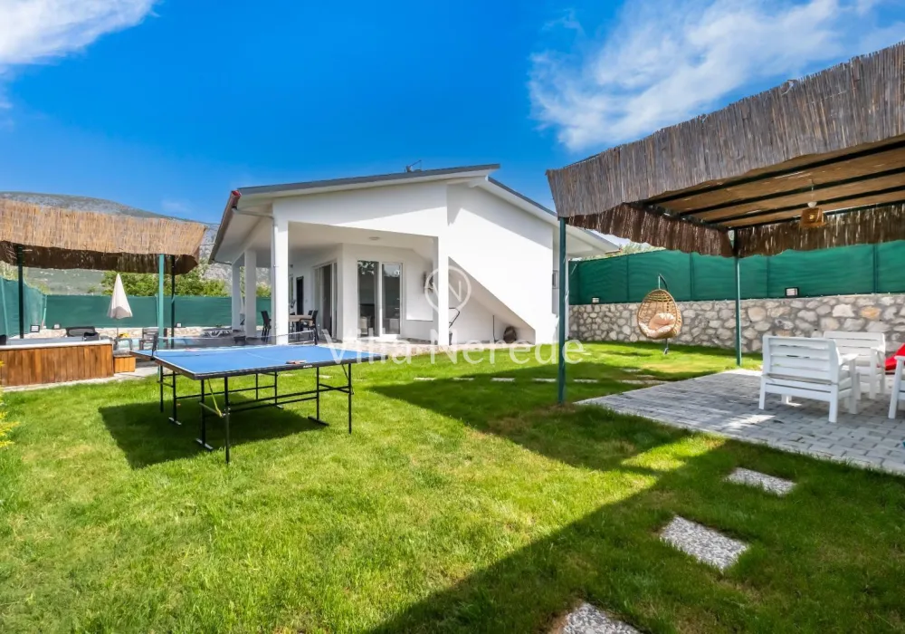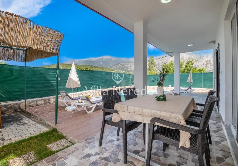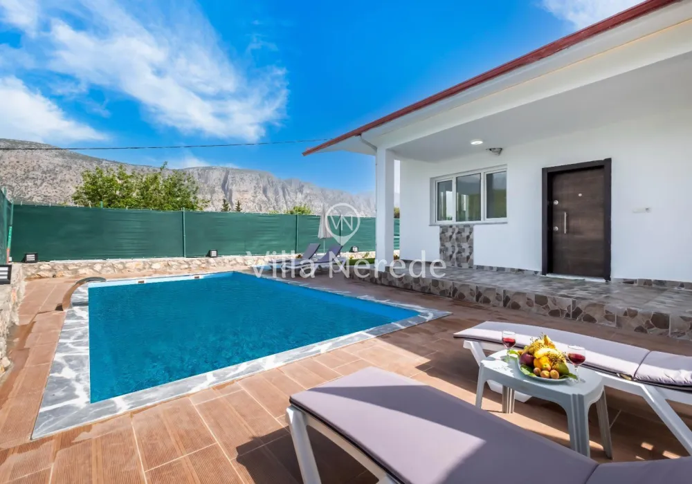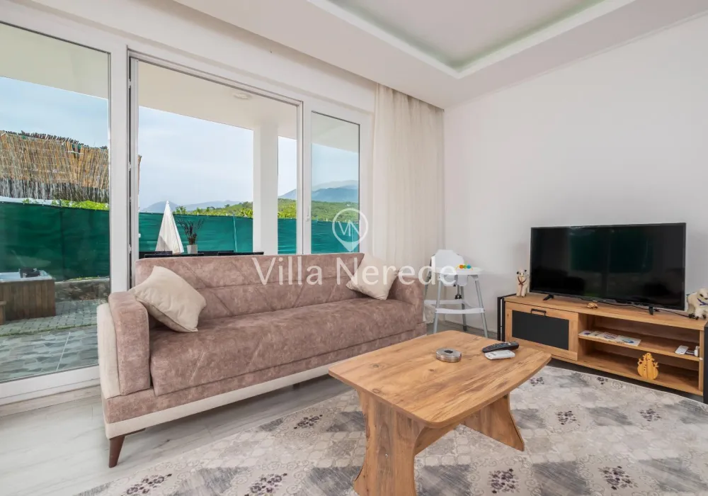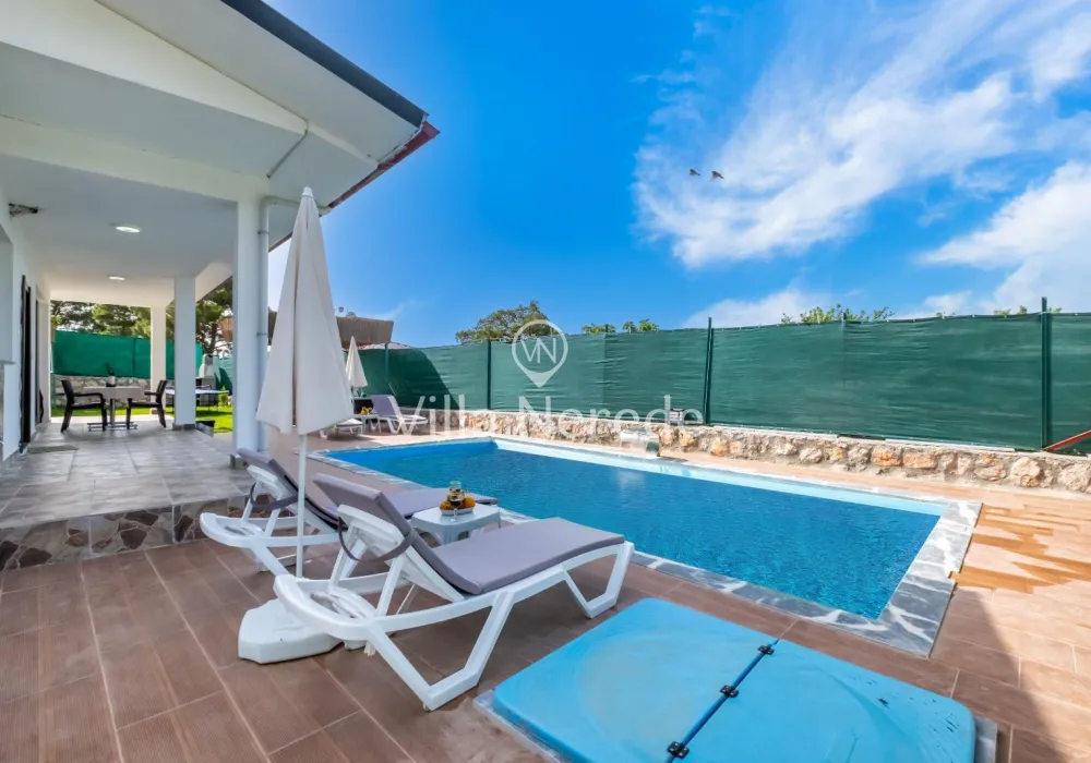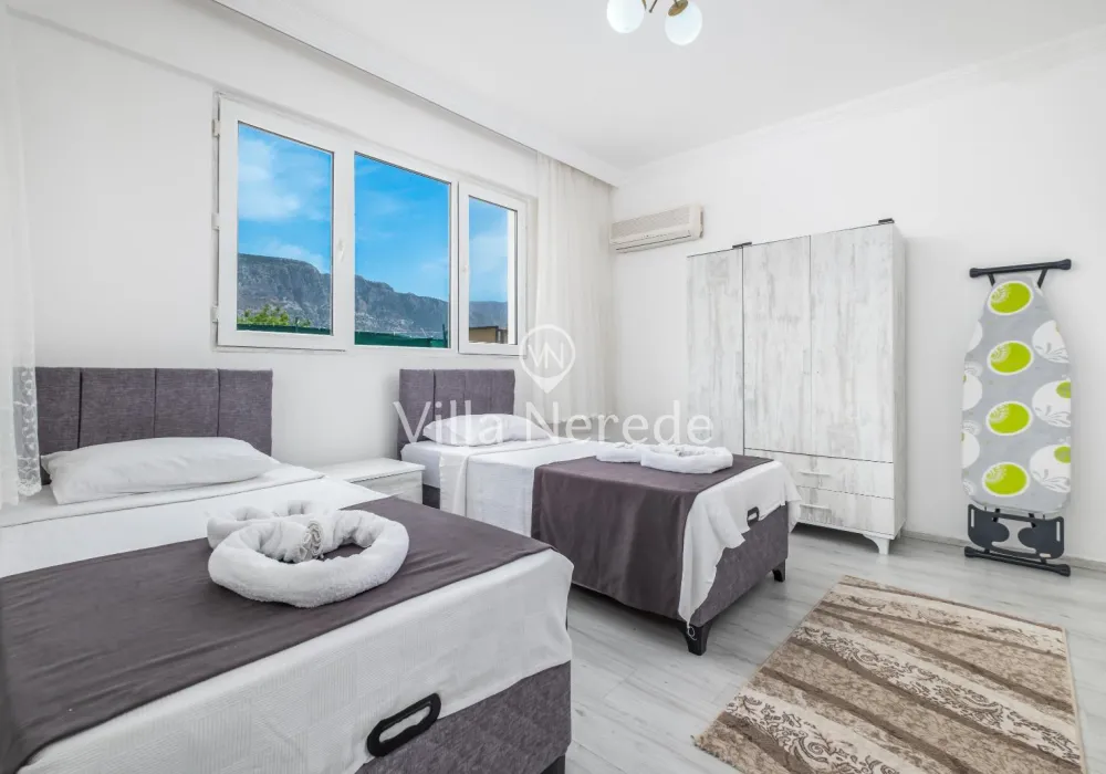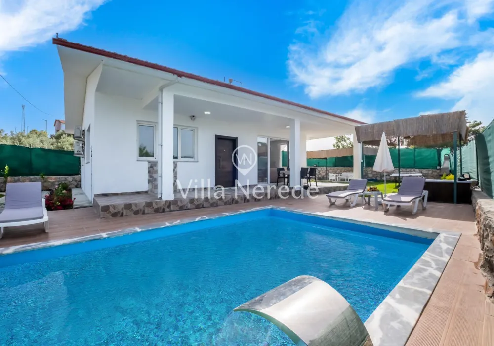 Doğa içinde, huzurlu bir konumu olan villanın havuz bahçe alanında kapasiteye uygun şezlong takımı, oturma grubu, barbekü alanı; havuz terasına açılan oturma odası, tam donanımlı açık mutfağı bulunmaktadır. Birinci yatak odasında çift kişilik yatak ve ebeveyn banyosu , ikinci yatak odasında ise tek kişilik iki adet yatak bulunmaktadır.Havuz terasında bulunan açık hava jakuzisiyle keyifli bir tatil sizleri bekliyor