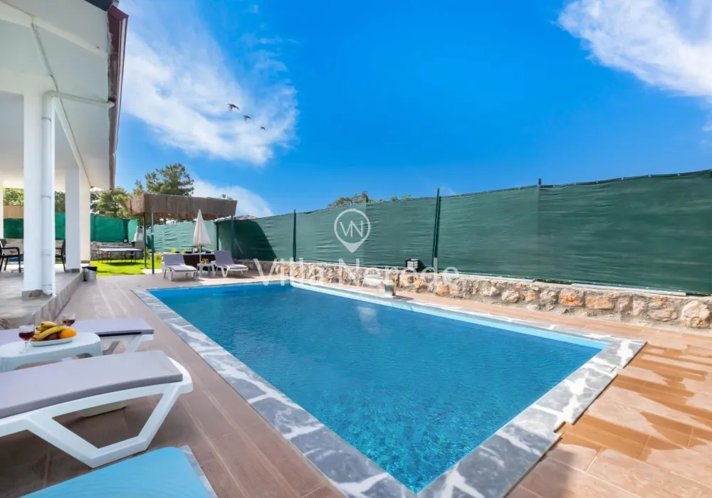 Fethiye Seydikemer mevkiinde bulunan villa, 2 yatak odasıyla 4 kişilik konaklama kapasitesi sunmaktadır.Modern ve konforlu bir şekilde dizayn edilen villamız korunaklı havuz alanına sahip olup, çekirdek aileler ve balayı çiftleri için uygundur.