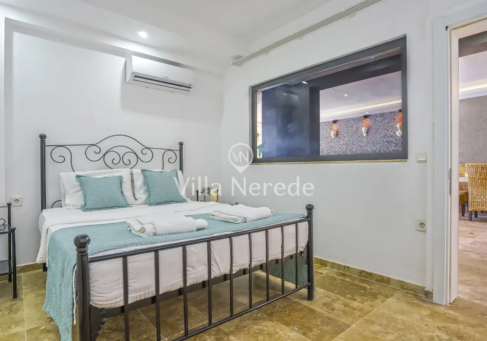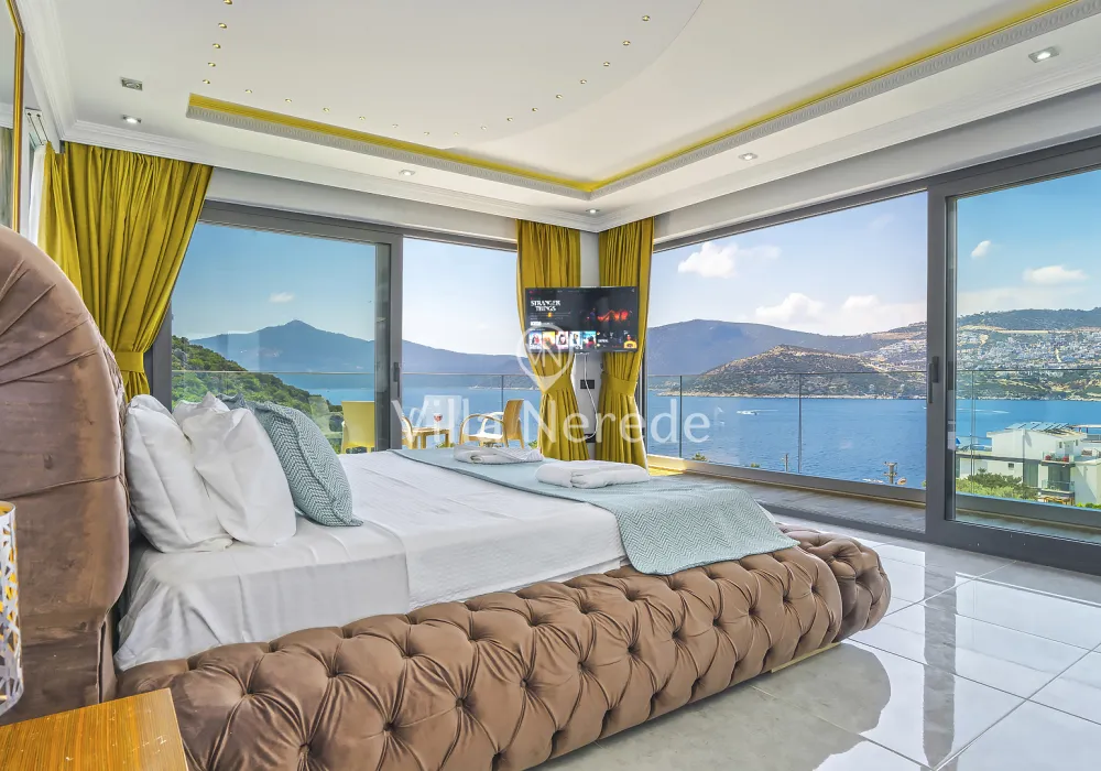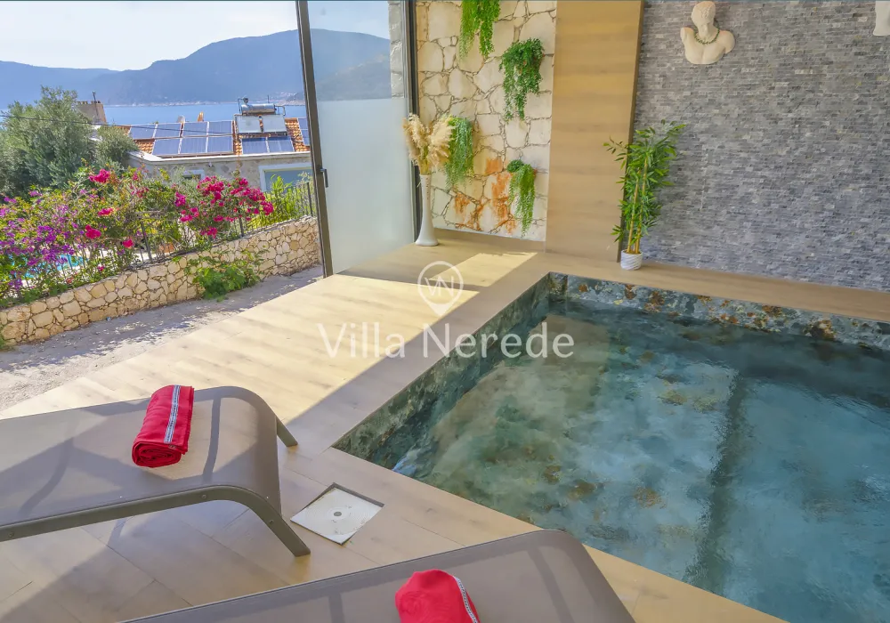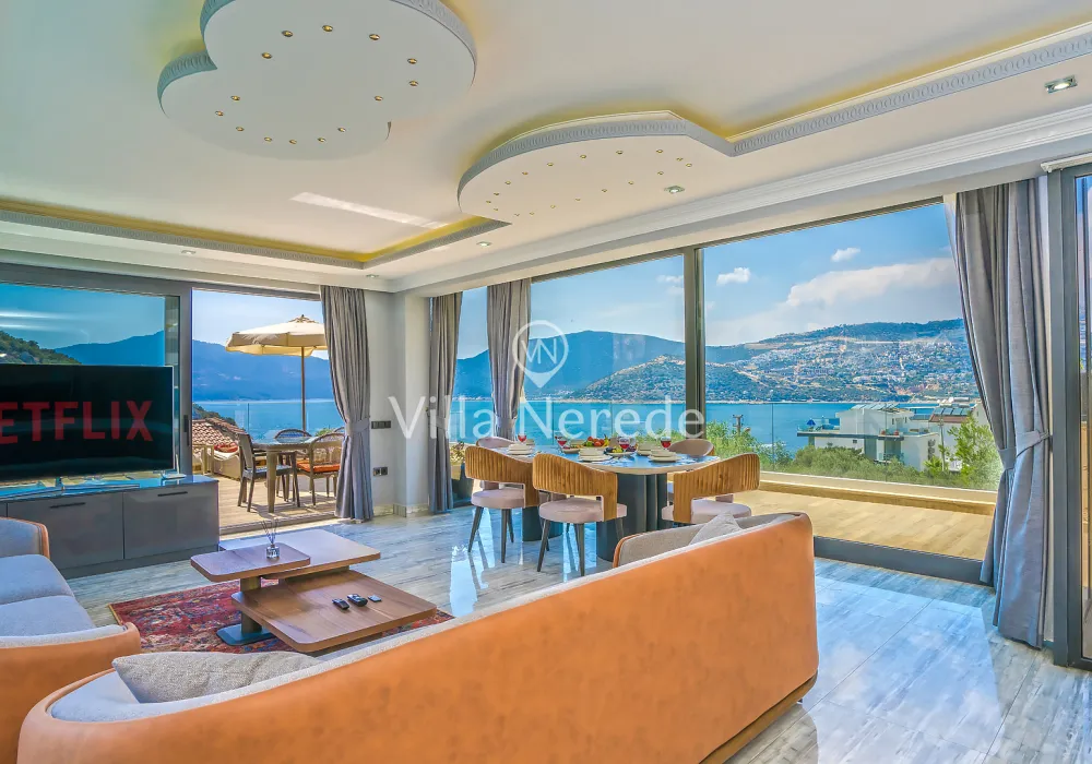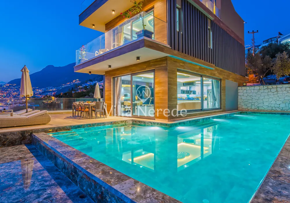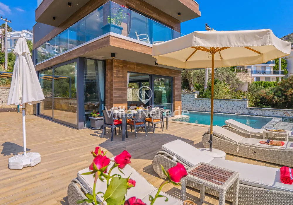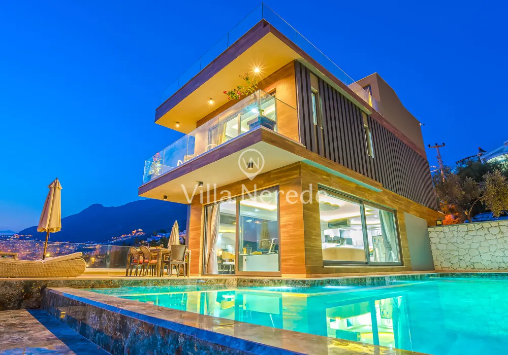 Kalkan Kışla mevkiinde bulunan villa, 4 yatak odasıyla 8 kişilik konaklama kapasitesi sunmaktadır. Modern ve konforlu bir şekilde dizayn edilen villamızda eşşsiz doğa ve deniz manzarasının yanında ; ısıtmalı kapalı yüzme havuzu ve jakuzisi yer alıp, kalabalık aileler ve arkadaş grupları için uygundur.