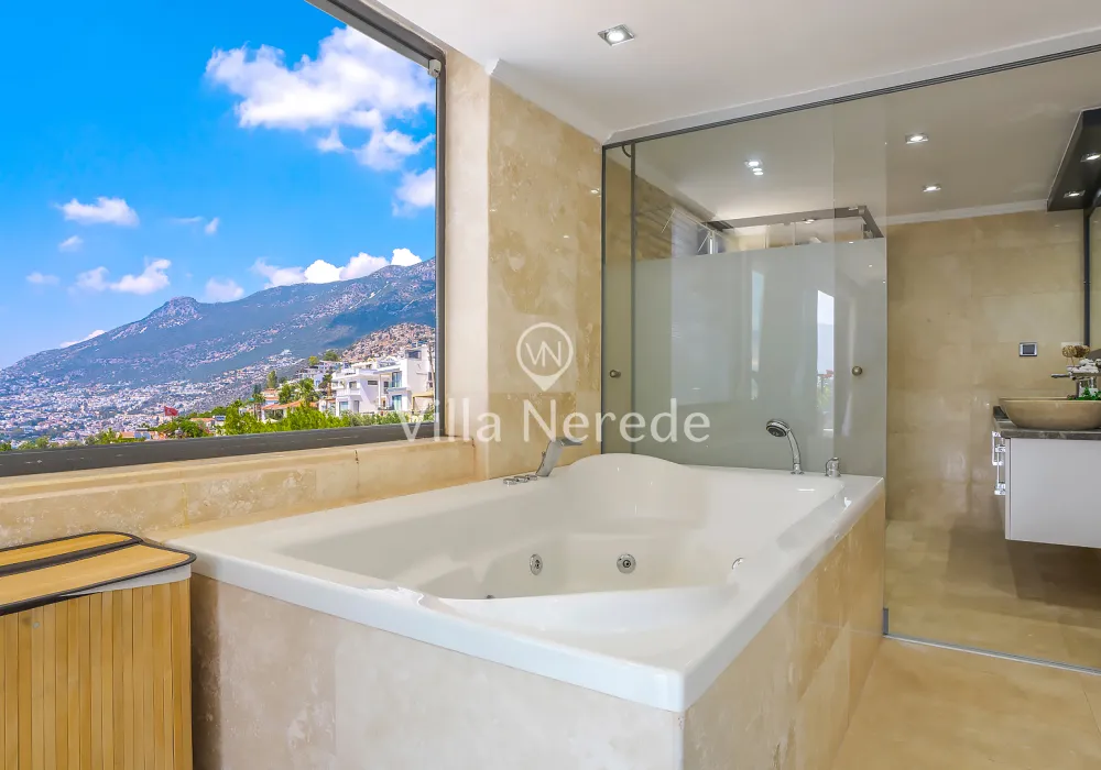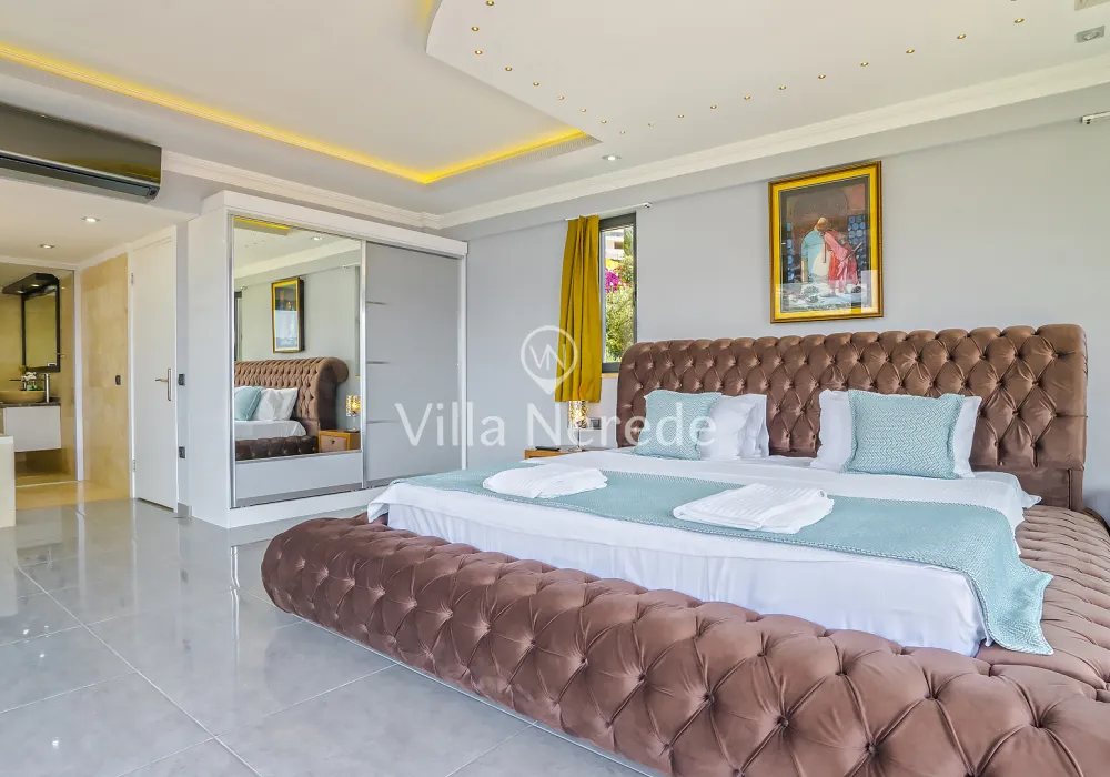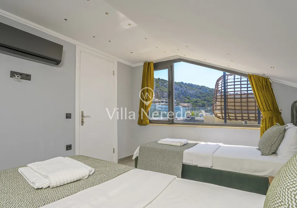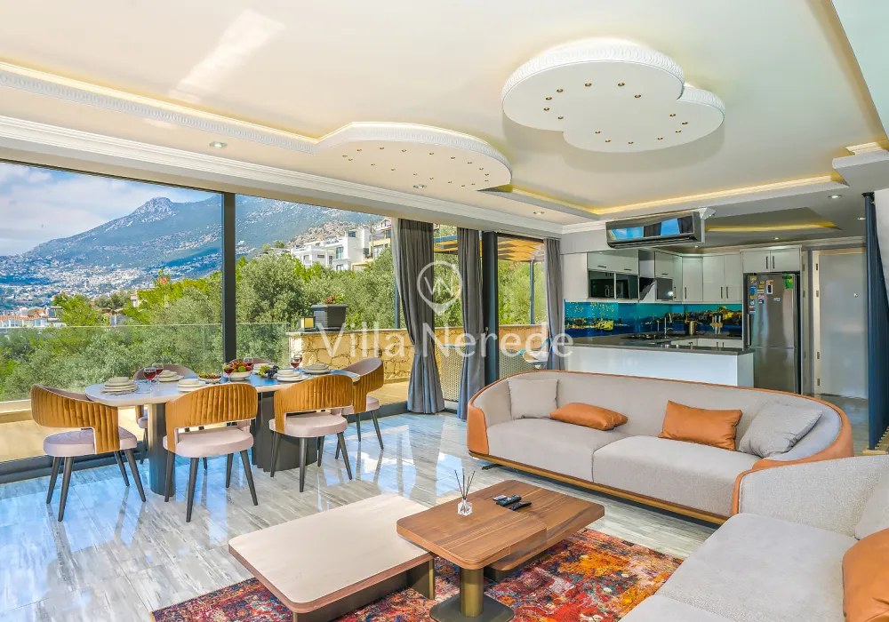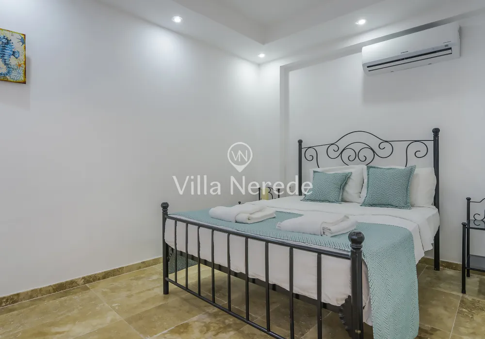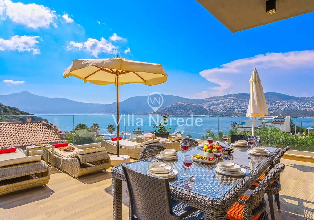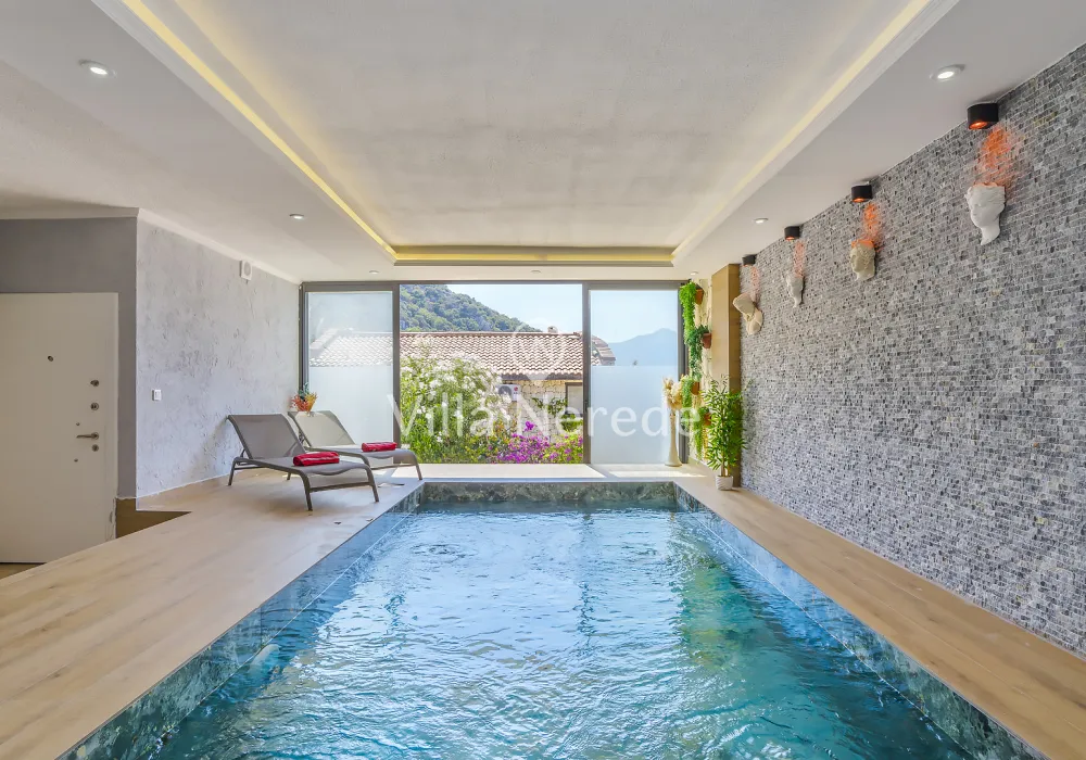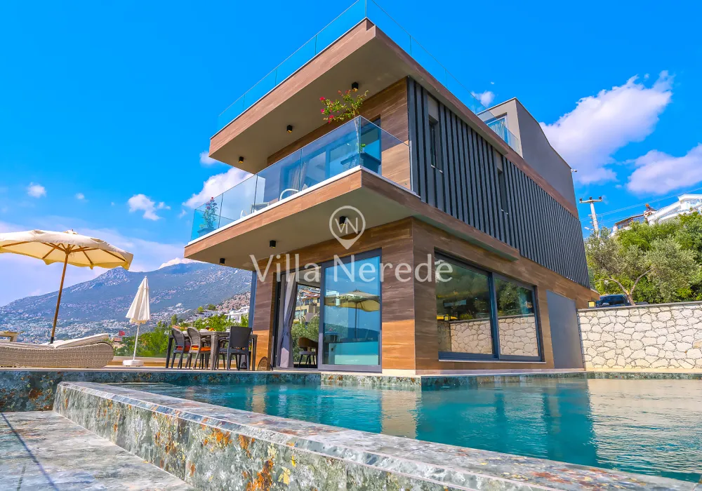 Kalkan Kışla mevkiinde bulunan villa, 4 yatak odasıyla 8 kişilik konaklama kapasitesi sunmaktadır. Modern ve konforlu bir şekilde dizayn edilen villamızda eşşsiz doğa ve deniz manzarasının yanında ; ısıtmalı kapalı yüzme havuzu ve jakuzisi yer alıp, kalabalık aileler ve arkadaş grupları için uygundur.