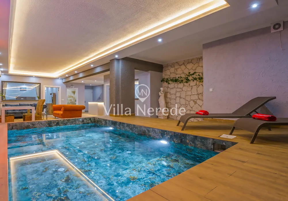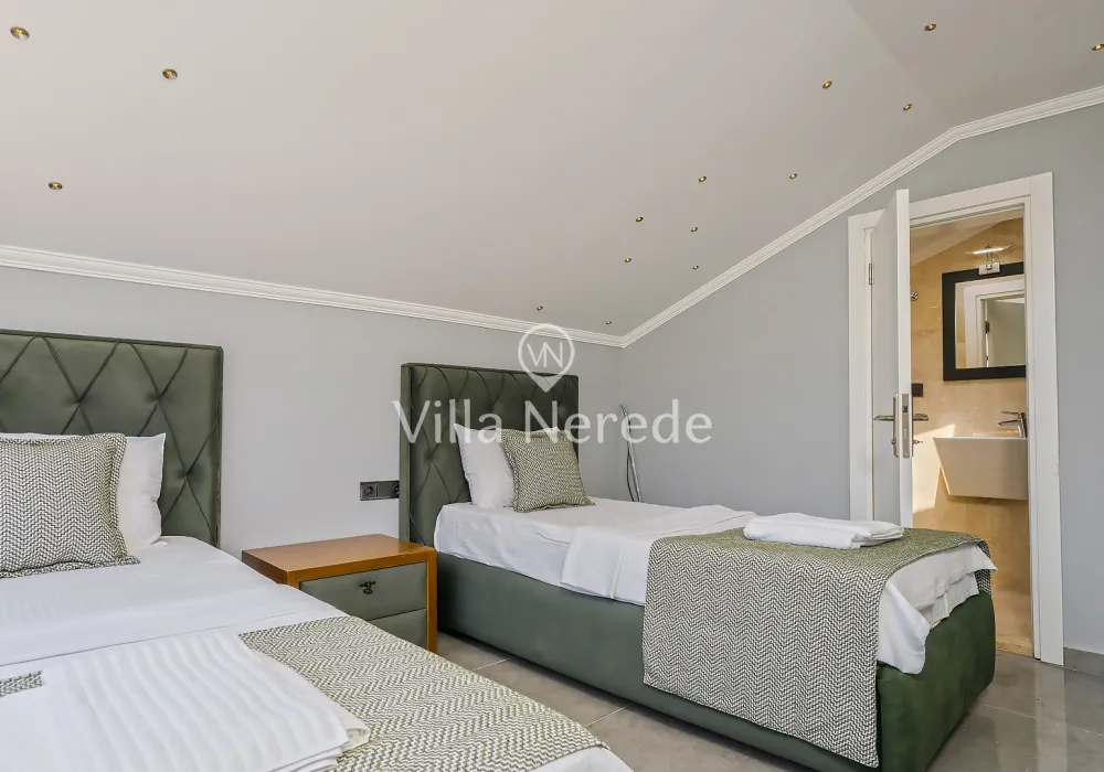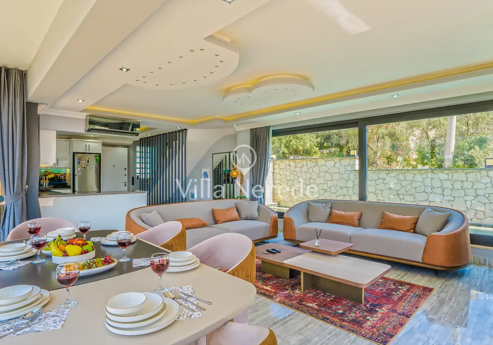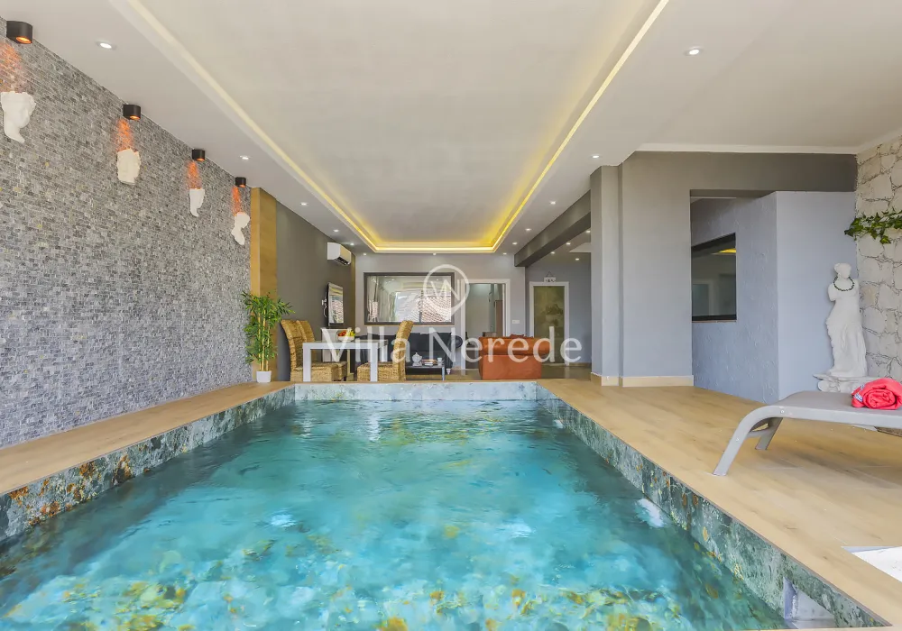 Kapalı yüzme havuz ve bahçe alanına sahip villada kapasiteye uygun oturma alanı, şezlong takımı, salıncak ve barbekü alanı; havuz terasına açılan konforlu oturma odası, ihtiyaçlarınızı karşılayacak donanıma sahip mutfağı mevcuttur.Özenle dekore edilmiş detayları sizleri memnun edecek, sevdiklerinizle ayrıcalıklı bir tatilin keyfini sürebileceksiniz.Bir yatak odasında çift kişilik yatak ,ebeveyn banyosu ve jakuzi ; iki yatak odasında çift kişilik yatak ve ebeveyn banyosu ;dördüncü yatak odasında ise iki tek kişilik yatak ve ebeveyn banyosu bulunmaktadır.