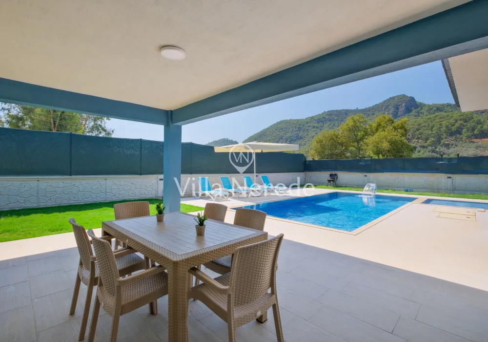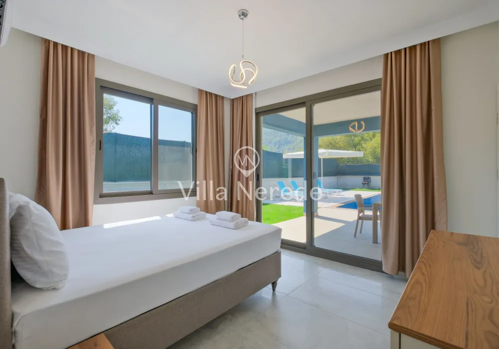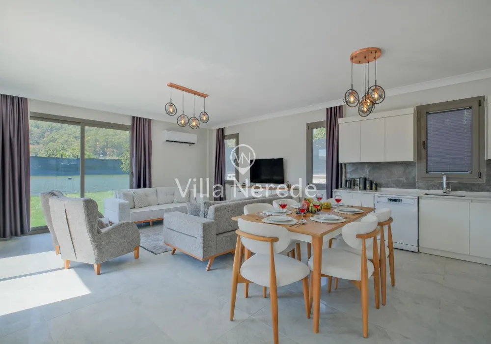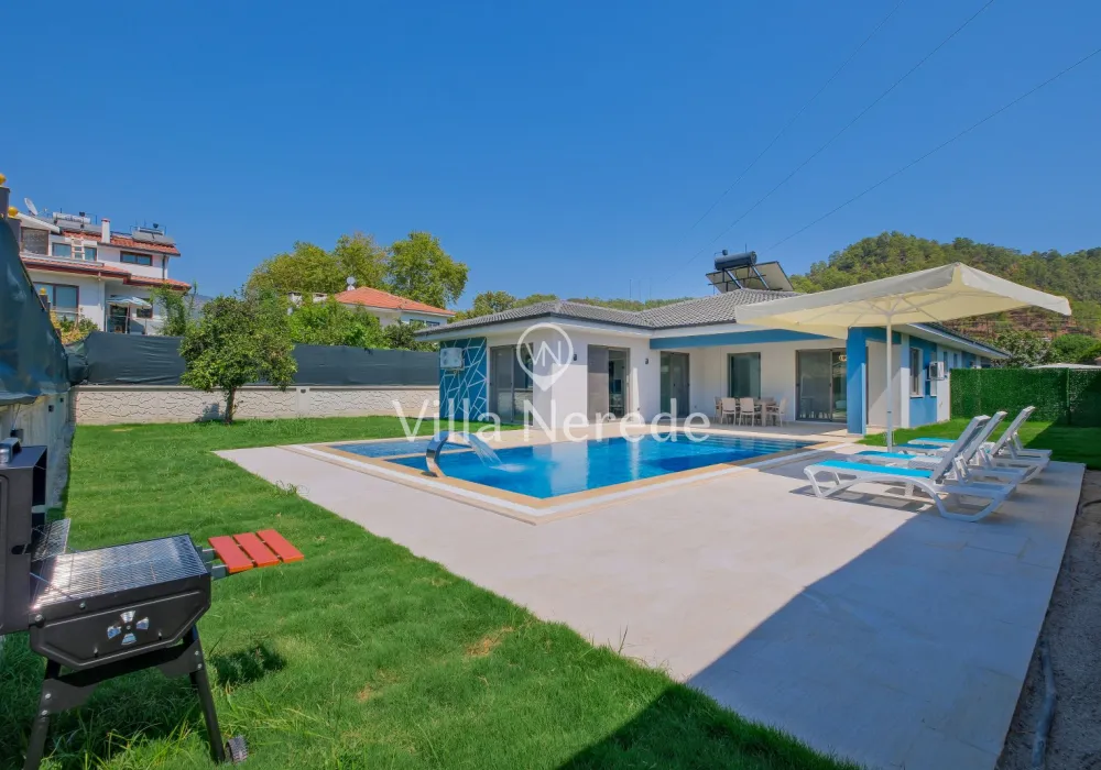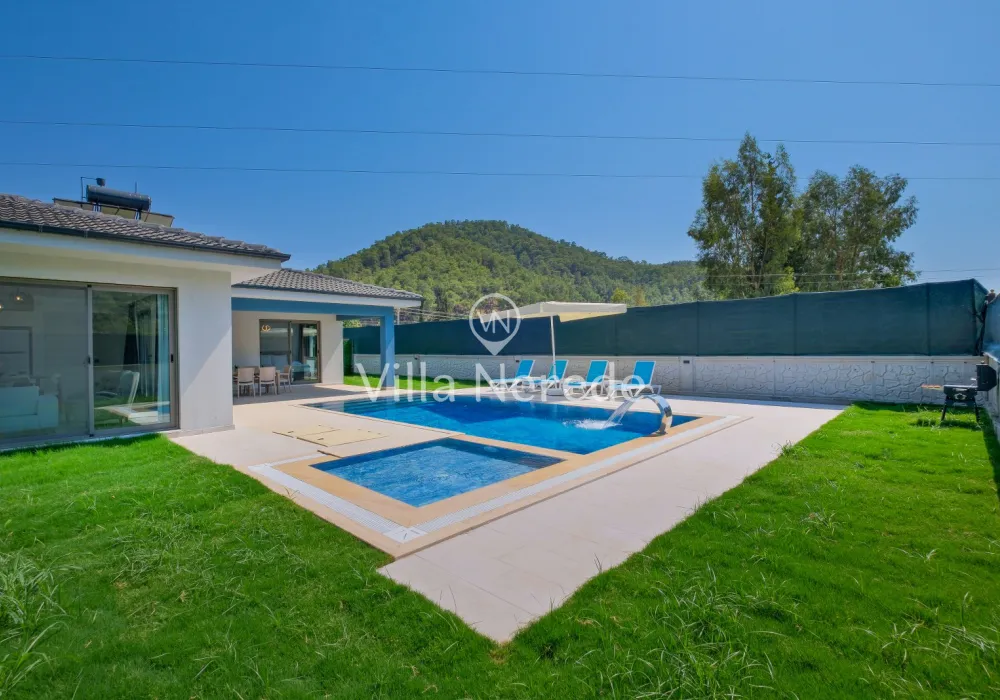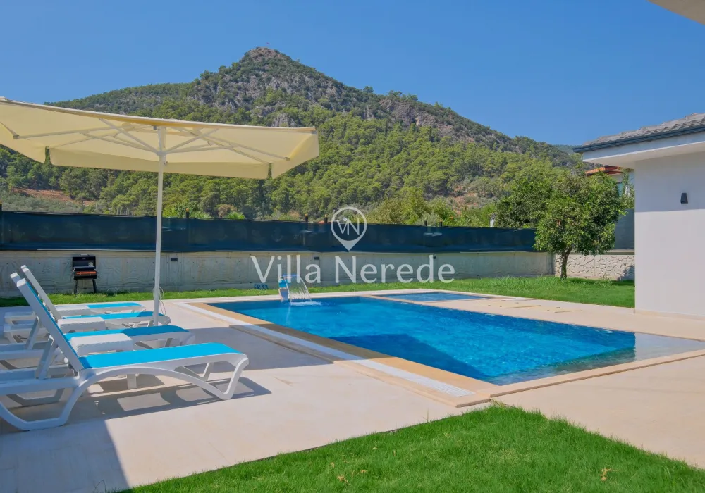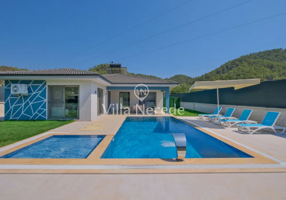 Fethiye Göcek İnlice mevkiinde bulunan villa, 3 yatak odasıyla 6 kişilik konaklama kapasitesi sunmaktadır. Modern ve konforlu bir şekilde dizayn edilen villamız korunaklı havuz alanına sahip olup, kalabalık aileler ve arkadaş grupları tarafından tercih edilmektedir.