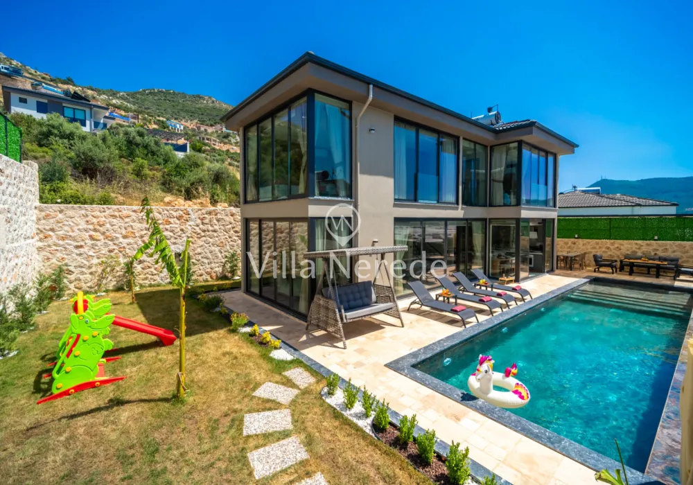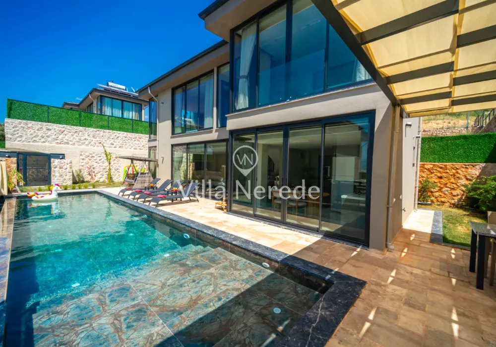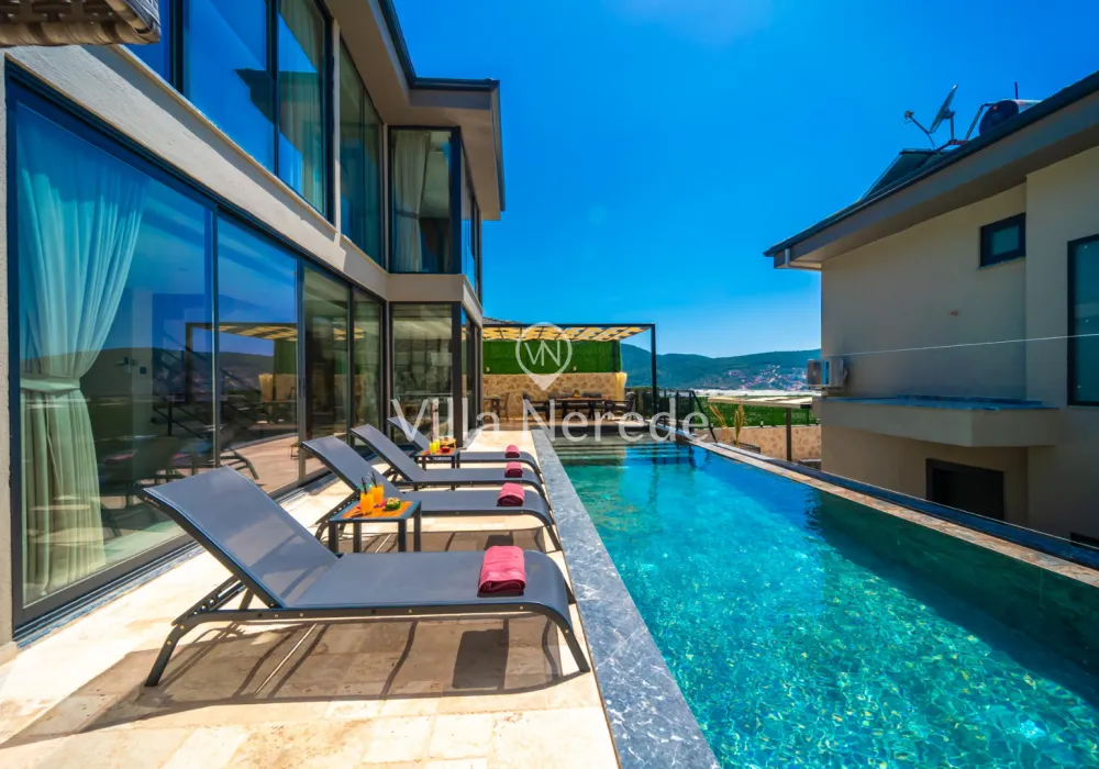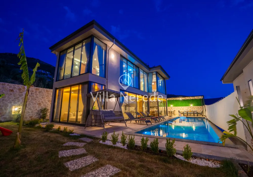 Kalkan Yeşilöy mevkiinde bulunan villa, 2 yatak odasıyla 4 kişilik konaklama kapasitesi sunmaktadır. Modern ve konforlu bir şekilde dizayn edilen villamız korunaklı havuz alanına sahip olup, çekirdek aileler ve balayı çiftleri için uygundur.