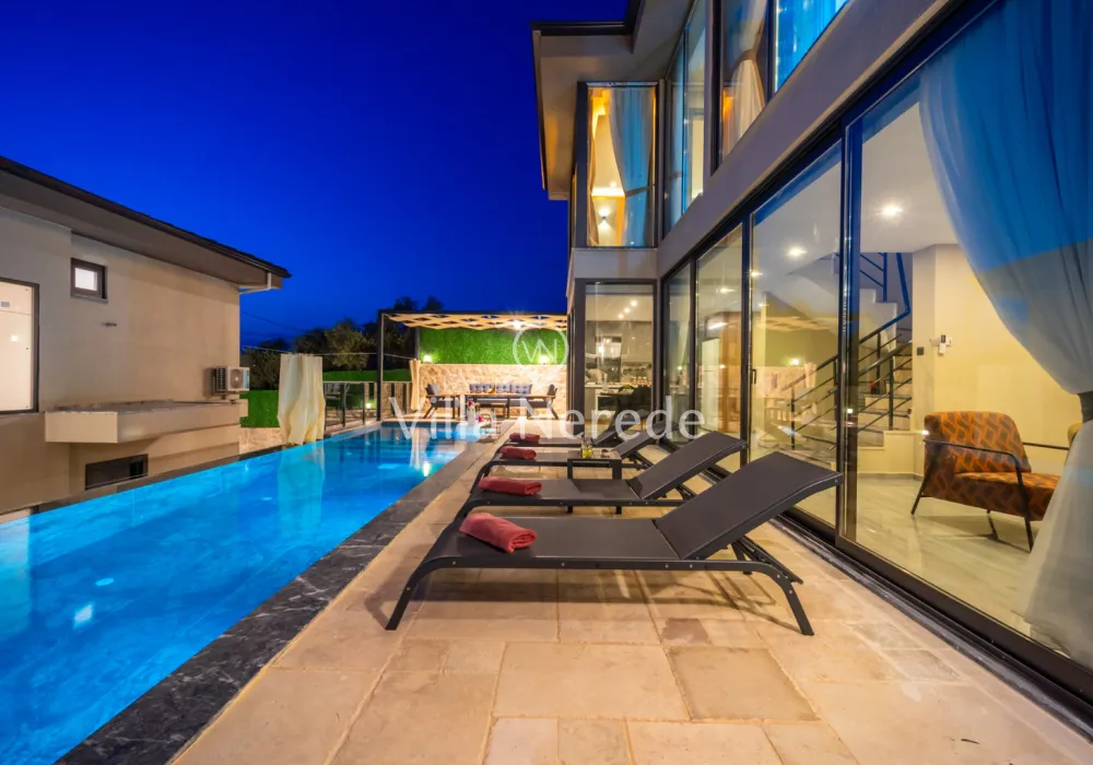Kalkan Yeşilöy mevkiinde bulunan villa, 2 yatak odasıyla 4 kişilik konaklama kapasitesi sunmaktadır. Modern ve konforlu bir şekilde dizayn edilen villamız korunaklı havuz alanına sahip olup, çekirdek aileler ve balayı çiftleri için uygundur.