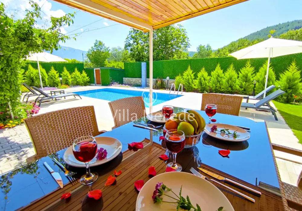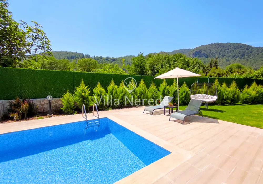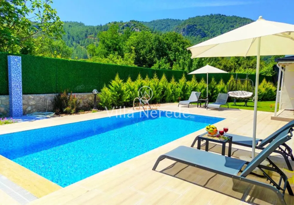 Fethiye Kayaköy mevkiinde bulunan villa, 2 yatak odasıyla 4 kişilik konaklama kapasitesi sunmaktadır. Balayı çiftleri ve çekirdek aileler tarafından tercih edilen villa, havuz alanı korunaklı bir yapıya sahiptir.