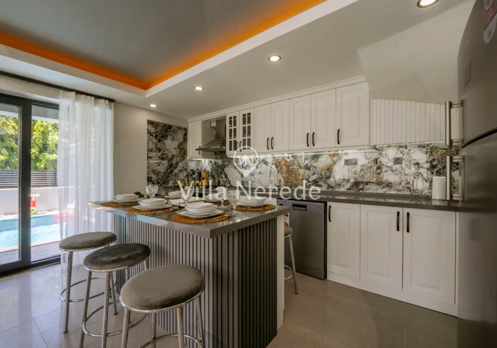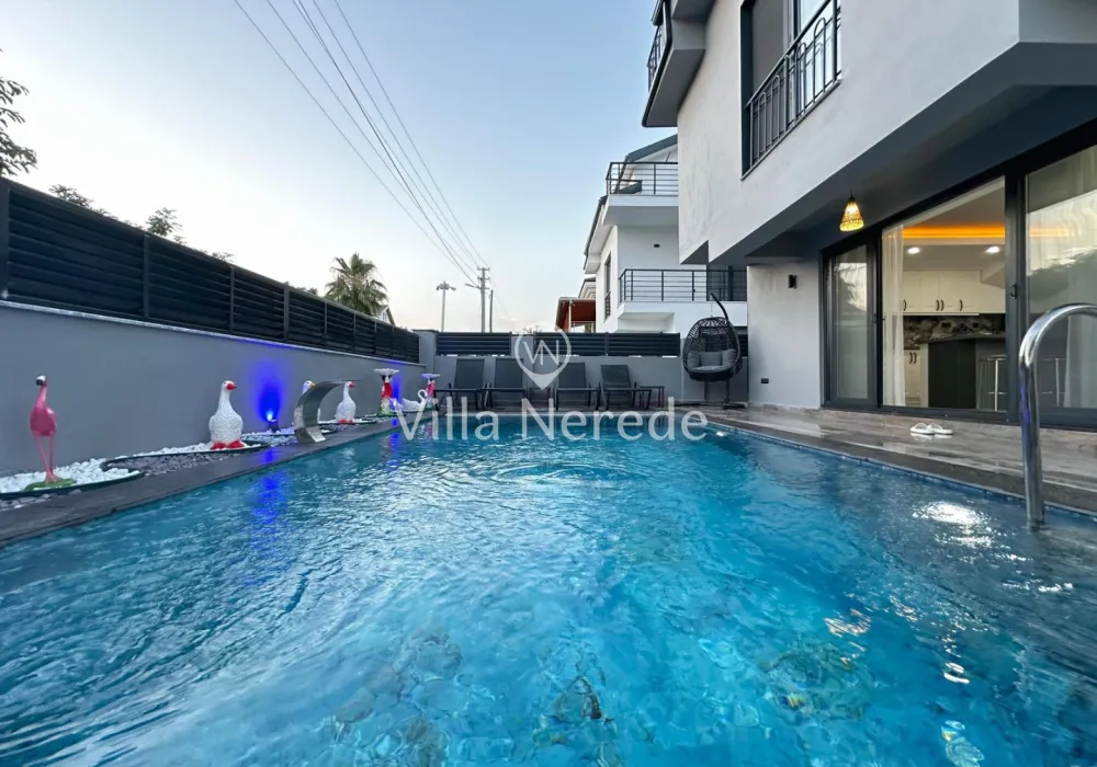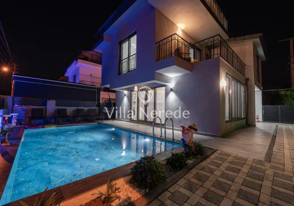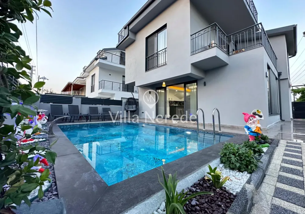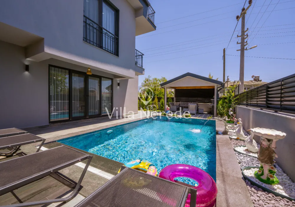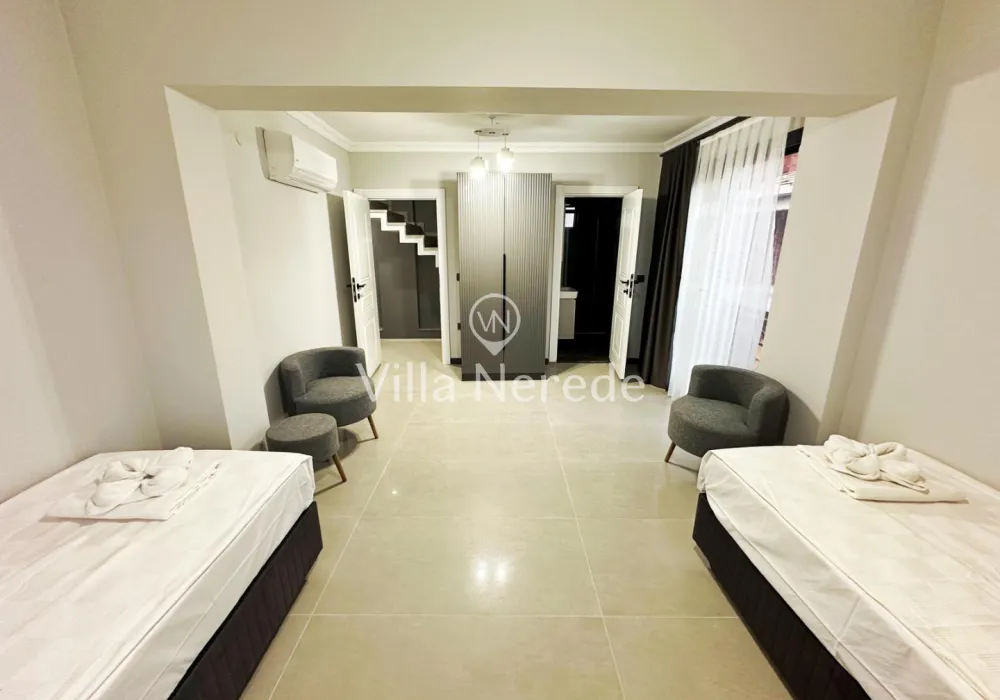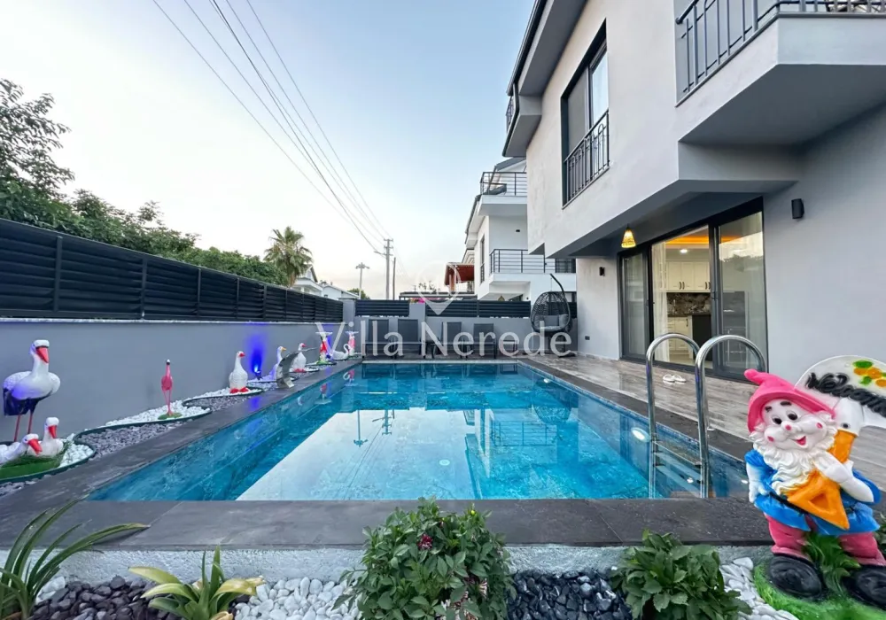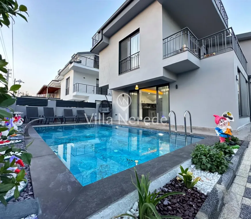 Fethiye Merkez de bulunan villa 3+1 kapisite 7 kişilik 2 adet çift kişilik yatak 2 kişilik 2 adet tek kişilik her odanın ebebeyn odası banyosu mevcut çatı katında banyosunda jakuzi geniş banyoya sahip salon açık amarekan mutfak tipi tv ve mutfak ev alteleri fırın ocak davlumbaz bulaşık mainası buzdolabı tost makinası migradalga fırın kahve makiansı çaymakinası su ısıtıcı ve su ratıma cihazı mevcuttur çay tabak tencere bardak çatal vs hertürlu araç gereç kullanım mevcuttur her odada kıma wifi ve dış koruma güvenlik açısından alarm sitemi mevcut olup iç koruma olarak yangn ve alarm dedöktörları takalıdır iç merdivenler yaşlı ve cocukların güvenkiği açısından merdiven koruma demirleri mevcuttur havuz 28 m2 derinlik 1,5 cm en yakın rest. market dolmuş duraklarına yürüme mesafesi 5 dak. en yakın plaj çalış ve merkeze araç ile 15 dakika