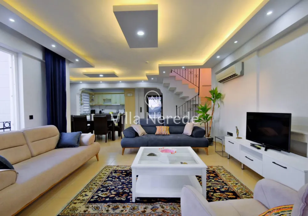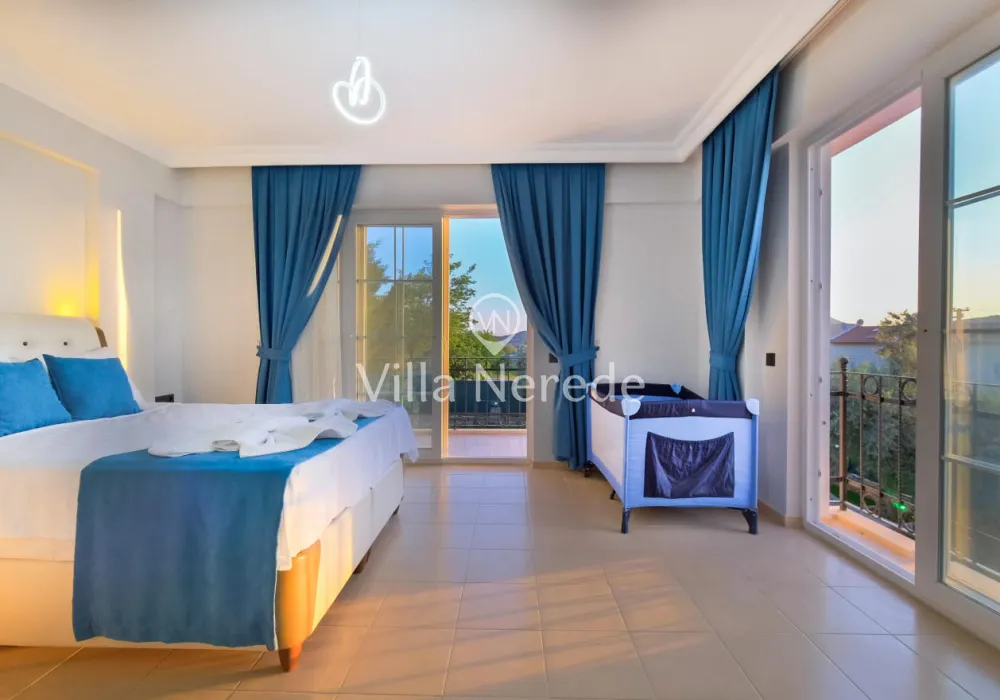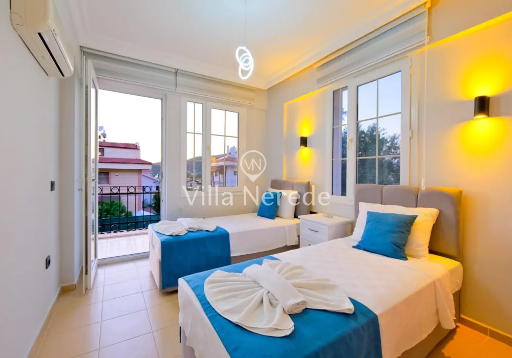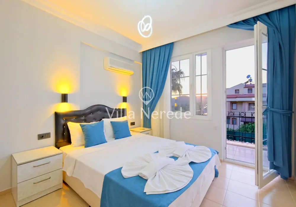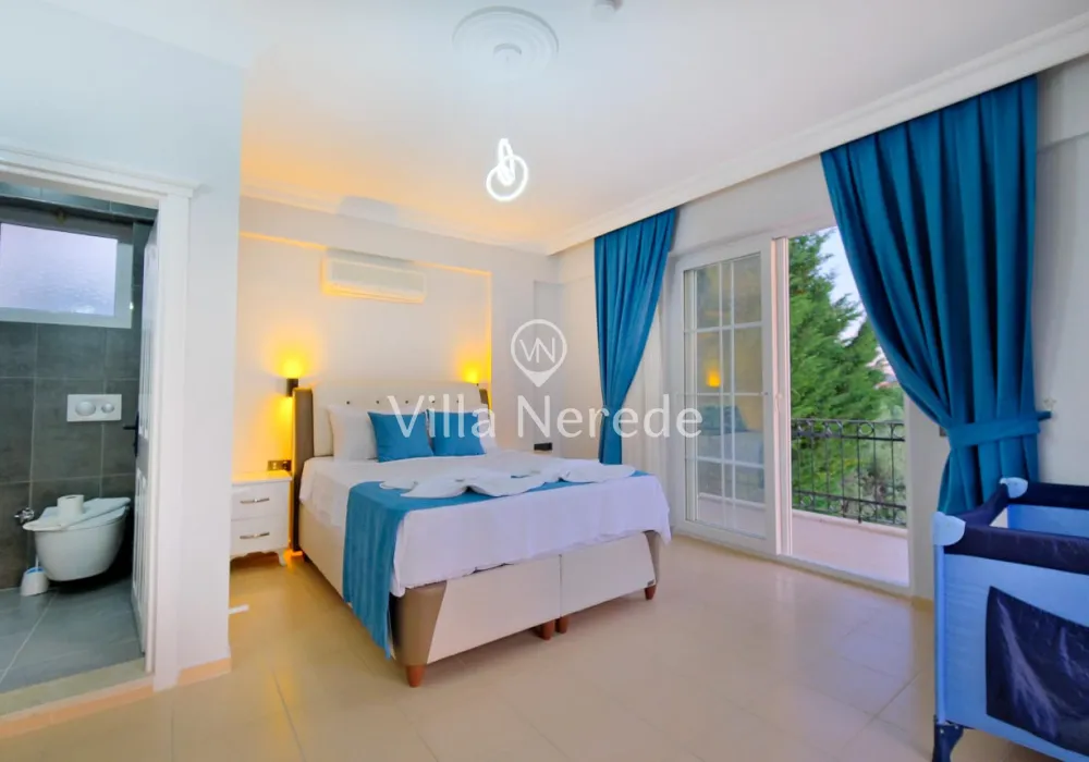 Fethiye Hisarönü mevkiinde bulunan villa 3 yatak odasıyla 6 kişilik konaklama kapasitesi sunmaktadır. Plajlara yakın bir konuma sahip ve genişliği ile göz dolduran villa, kalabalık aileler ve arkadaş grupları için uygundur.