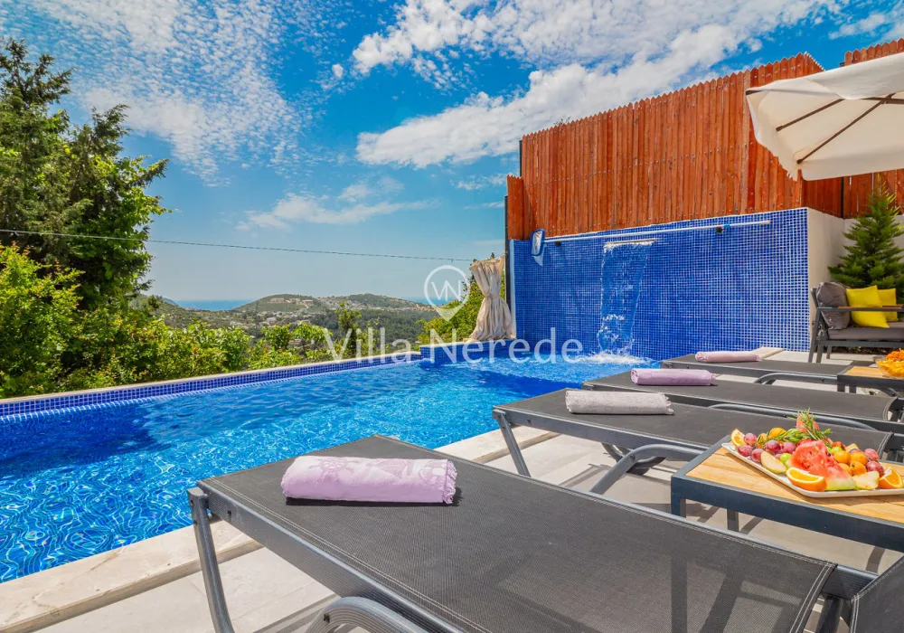 Kalkan İslamlar mevkiinde bulunan villa, 2 yatak odasıyla 4 kişilik konaklama kapasitesi sunmaktadır. Modern ve konforlu bir şekilde dizayn edilen villamız deniz manzarasına da sahip olup korunaklı havuz alanını ile çekirdek aileler ve balayı çiftleri için uygundur.