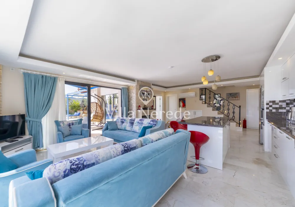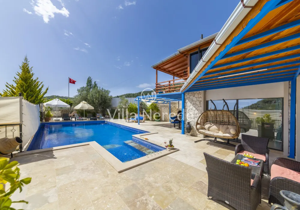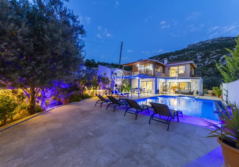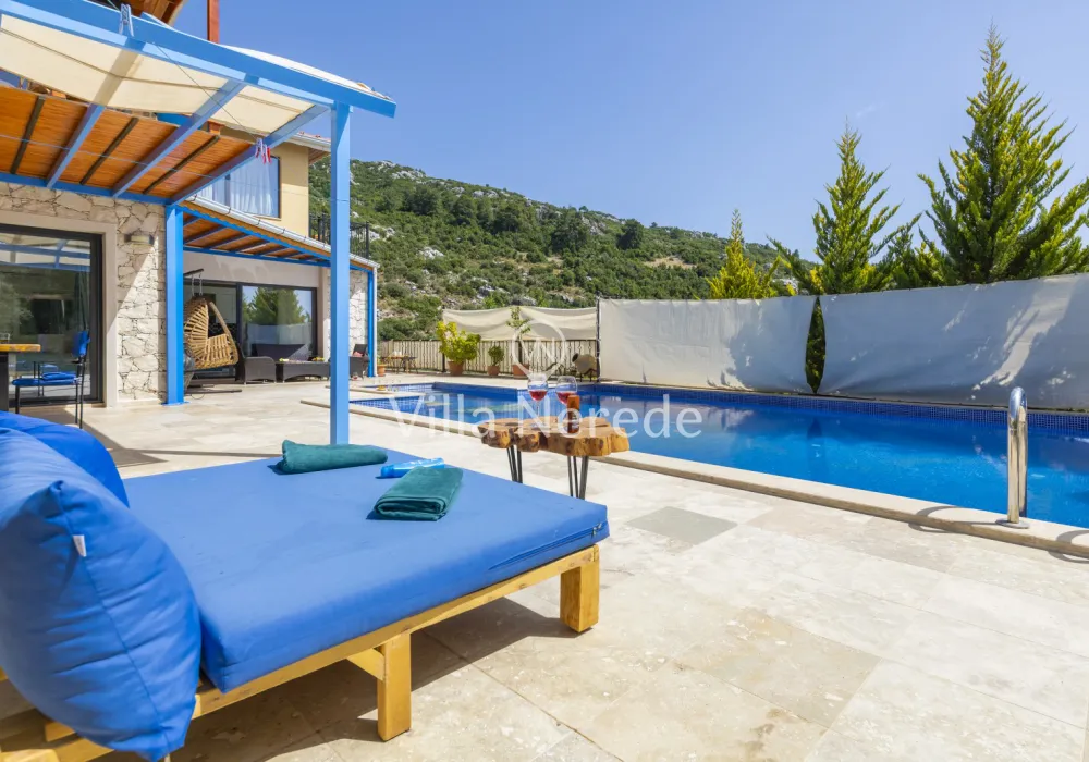 Kalkan İslamlar mevkiinde bulunan villa, 3 yatak odasıyla 6 kişilik konaklama kapasitesi sunmaktadır. Modern ve konforlu bir şekilde dizayn edilen villamız korunaklı havuz alanına sahip olup, kalabalık aileler ve arkadaş grupları için uygundur.