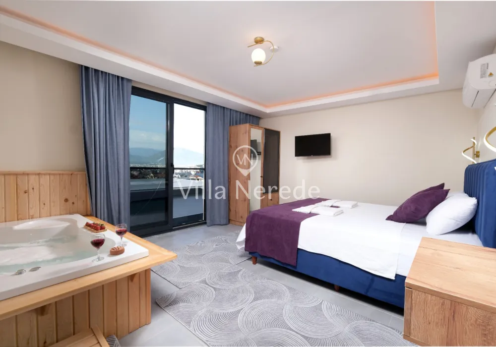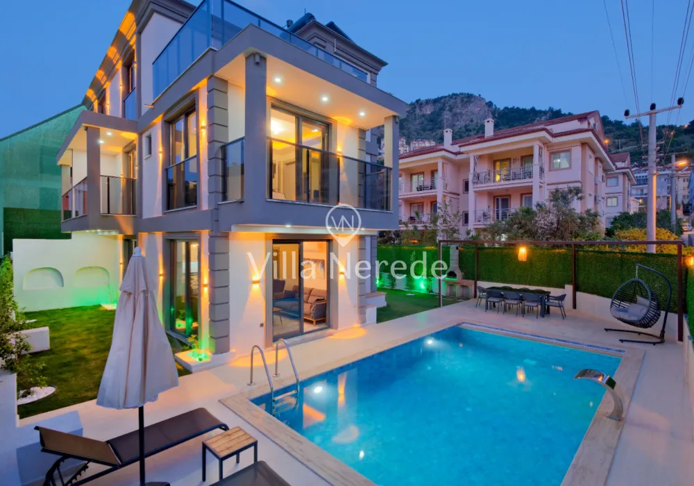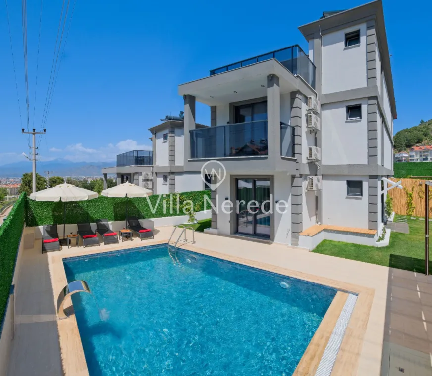 Fethiye merkezde bulunan villa, 3 yatak odasıyla 6 kişilik konaklama kapasitesi sunmaktadır. Plajlara yakın bir konuma sahip ve genişliği ile göz dolduran villa, arkadaş grupları ve kalabalık aileler için uygundur.