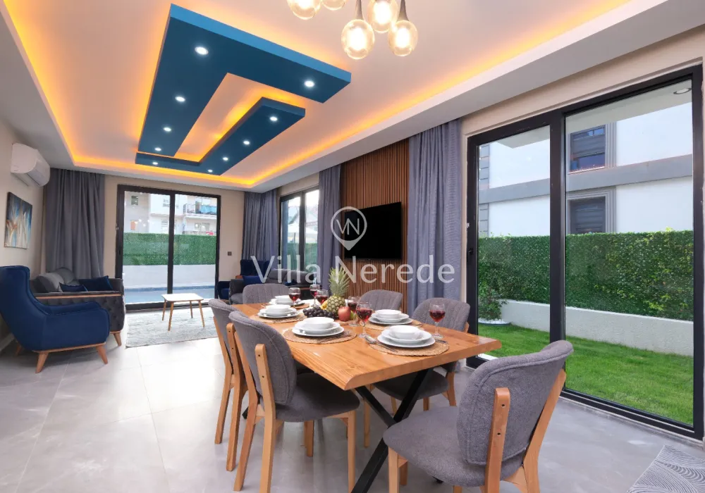 Muhteşem doğa manzarasına hakim olan villa, plaja, merkezi noktalara rahatlıkla ulaşabileceğiniz, konforlu bir konuma sahip olup; ayrıcalıklı bir tatilin keyfini sürebilecek, tatilinizin tadına varacağınız bu villa, keyifli bir mola için siz değerli misafirlerini ağırlamayı beklemektedir.