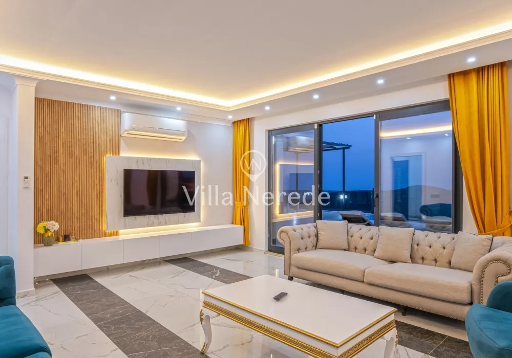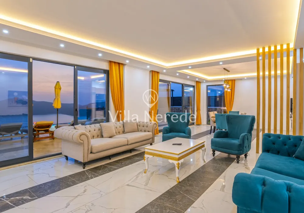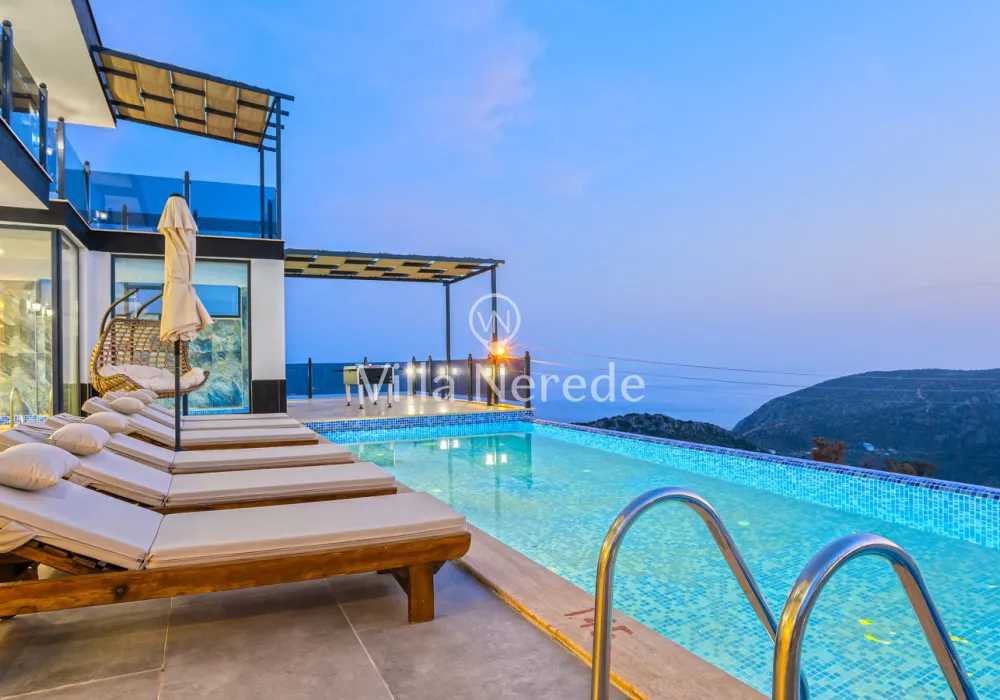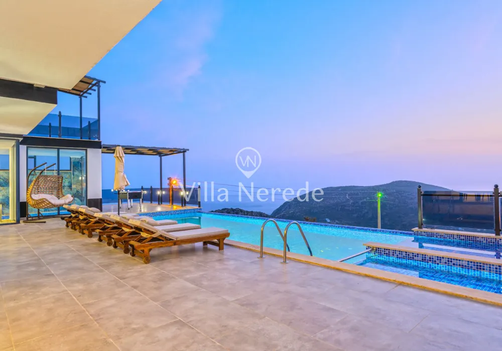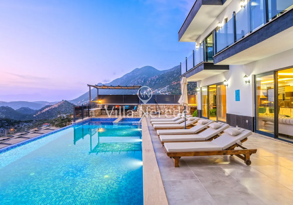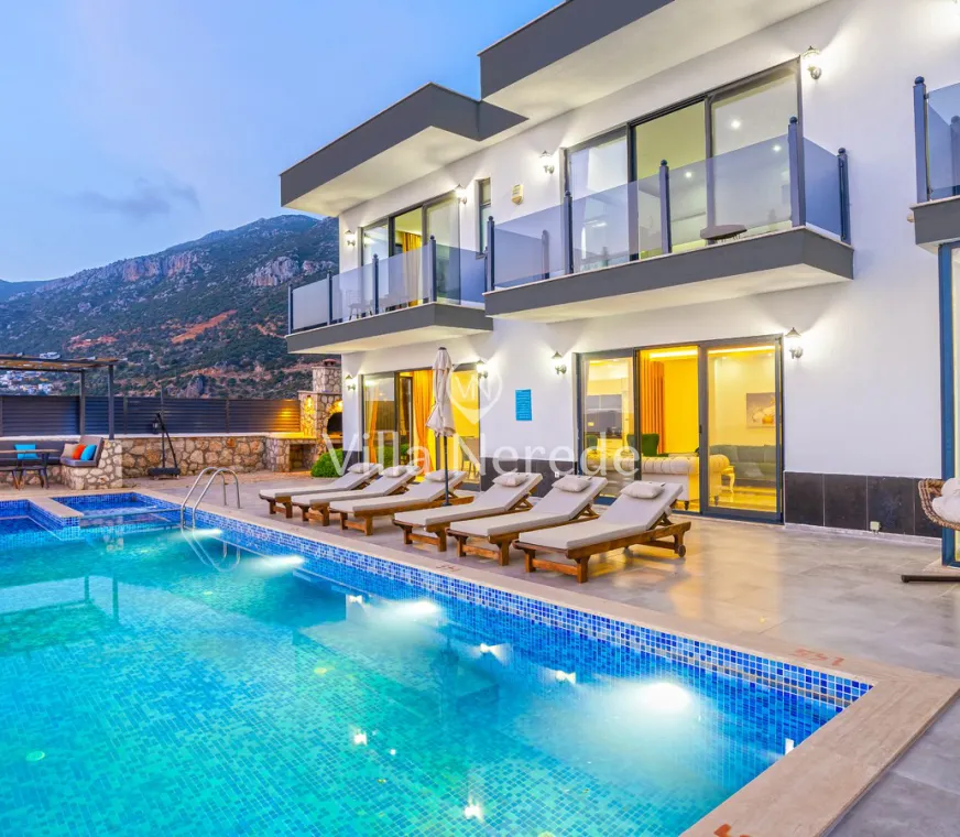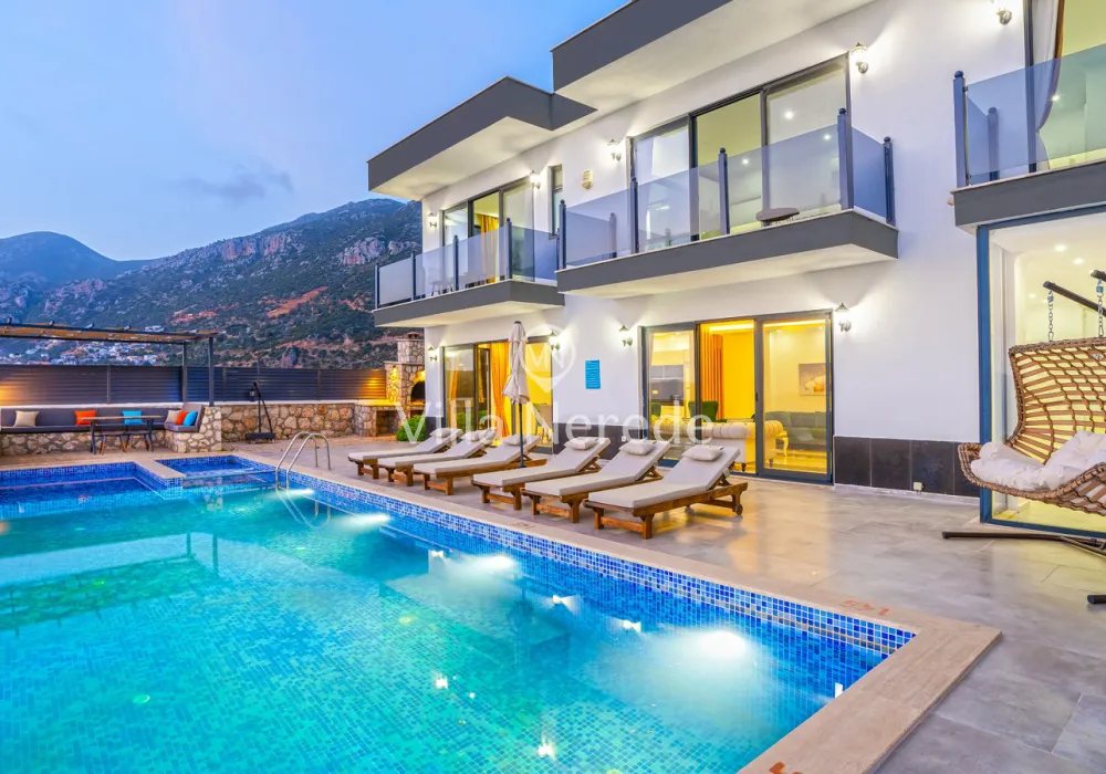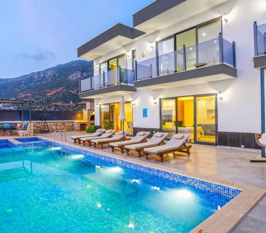 Kalkan Ordu mevkiinde bulunan villa, 3 yatak odasıyla 6 kişilik konaklama kapasitesi sunmaktadır. Modern ve konforlu bir şekilde dizayn edilen villamız deniz manzarasına sahip olup kış aylarında ısıtmalı kapalı havuzu ile kalabalık aileler ve arkadaş grupları tarafından tercih edilmektedir.