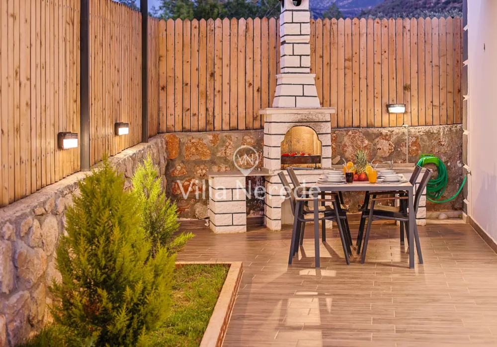 Kalkan Çavdır mevkiinde bulunan villa, 2 yatak odasıyla 4 kişilik konaklama kapasitesi sunmaktadır. Doğa manzaralı villa, çekirdek aile ve balayı çiftleri için uygundur.