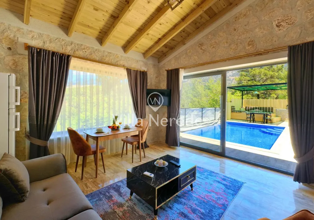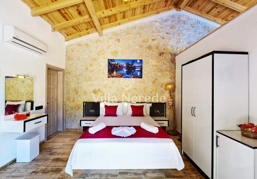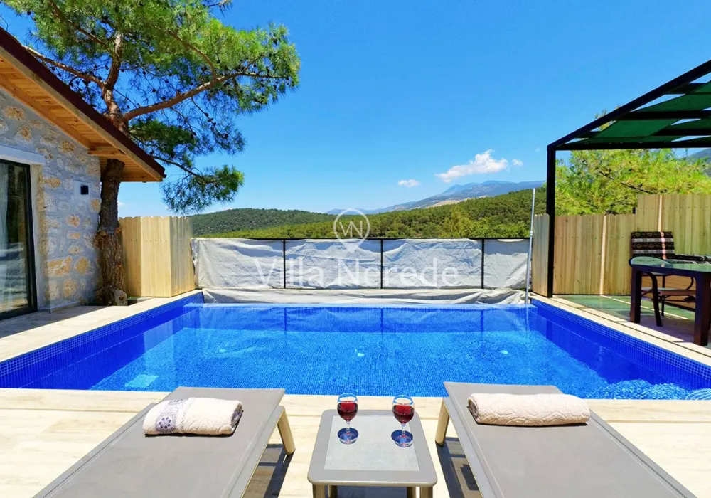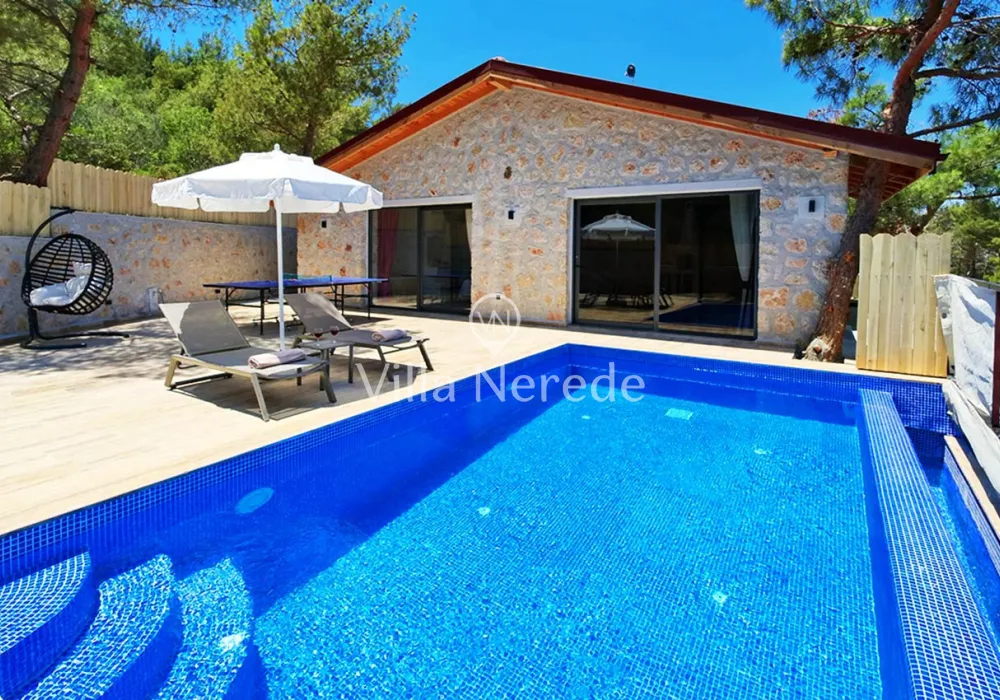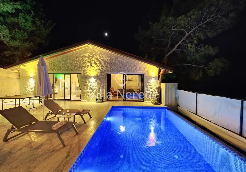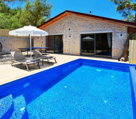 Kalkan Akbel mevkiinde bulunan villa, 1 yatak odasıyla 2 kişilik konaklama kapasitesi sunmaktadır. Modern ve konforlu bir şekilde dizayn edilen villamız korunaklı havuz alanına sahip olup, çekirdek aileler ve balayı çiftleri için uygundur.